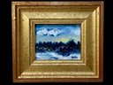Philip Barter Oil Painting Winter Scene Signed, this is a very small oil painting on board, signed in lower right by the artist. The sight size is 2.25” x 3.” Barter is one of the most iconic and well recognized Maine artists.