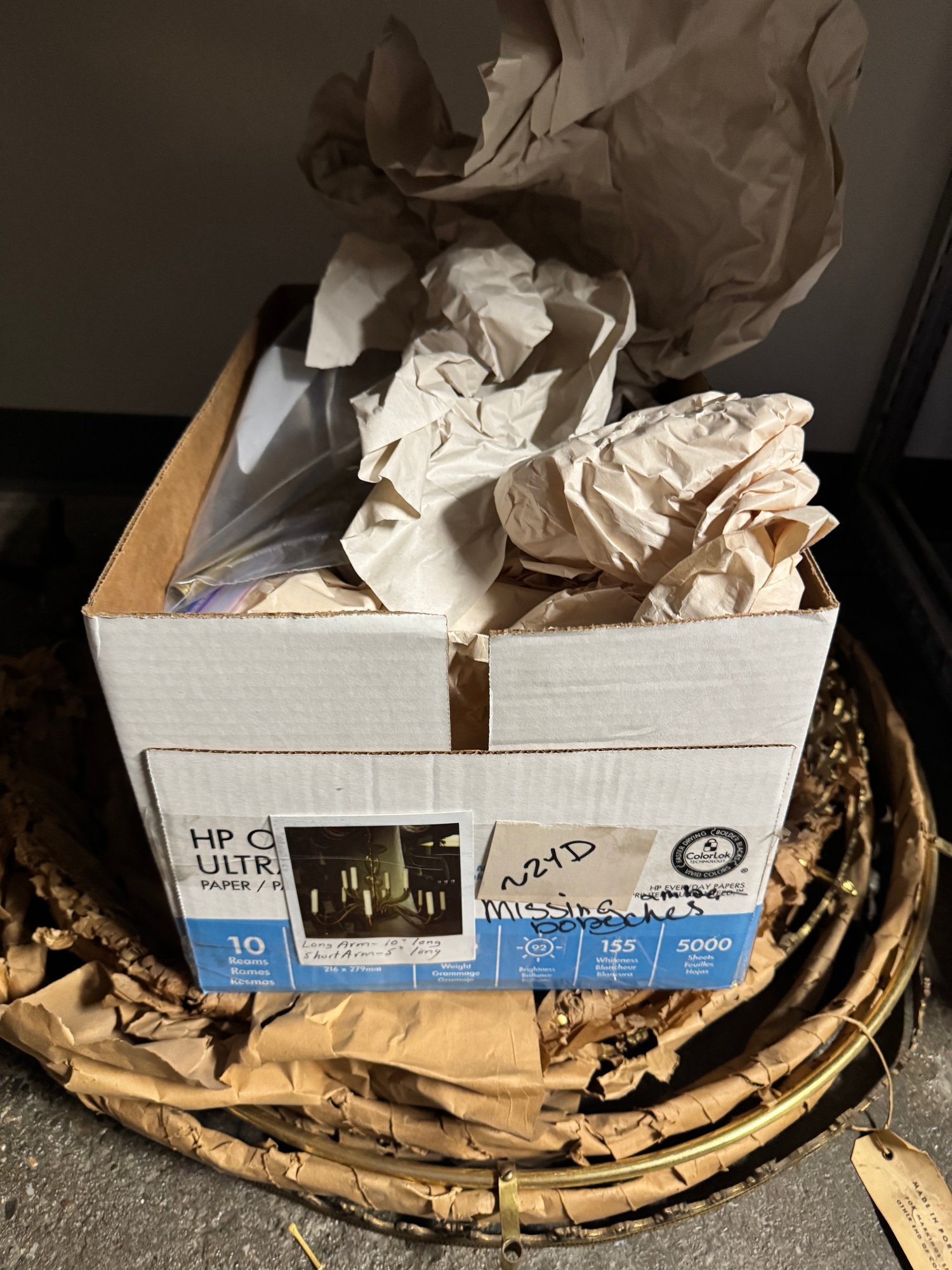 Large Boho Chandelier Lot Near Complete ? Plus extra - We don't know what's for sure, but there's a LOT. For the right buyer, it's worth it for the big bag of crystals alone! Small fortune in those. Not to mention, brass & copper pieces.