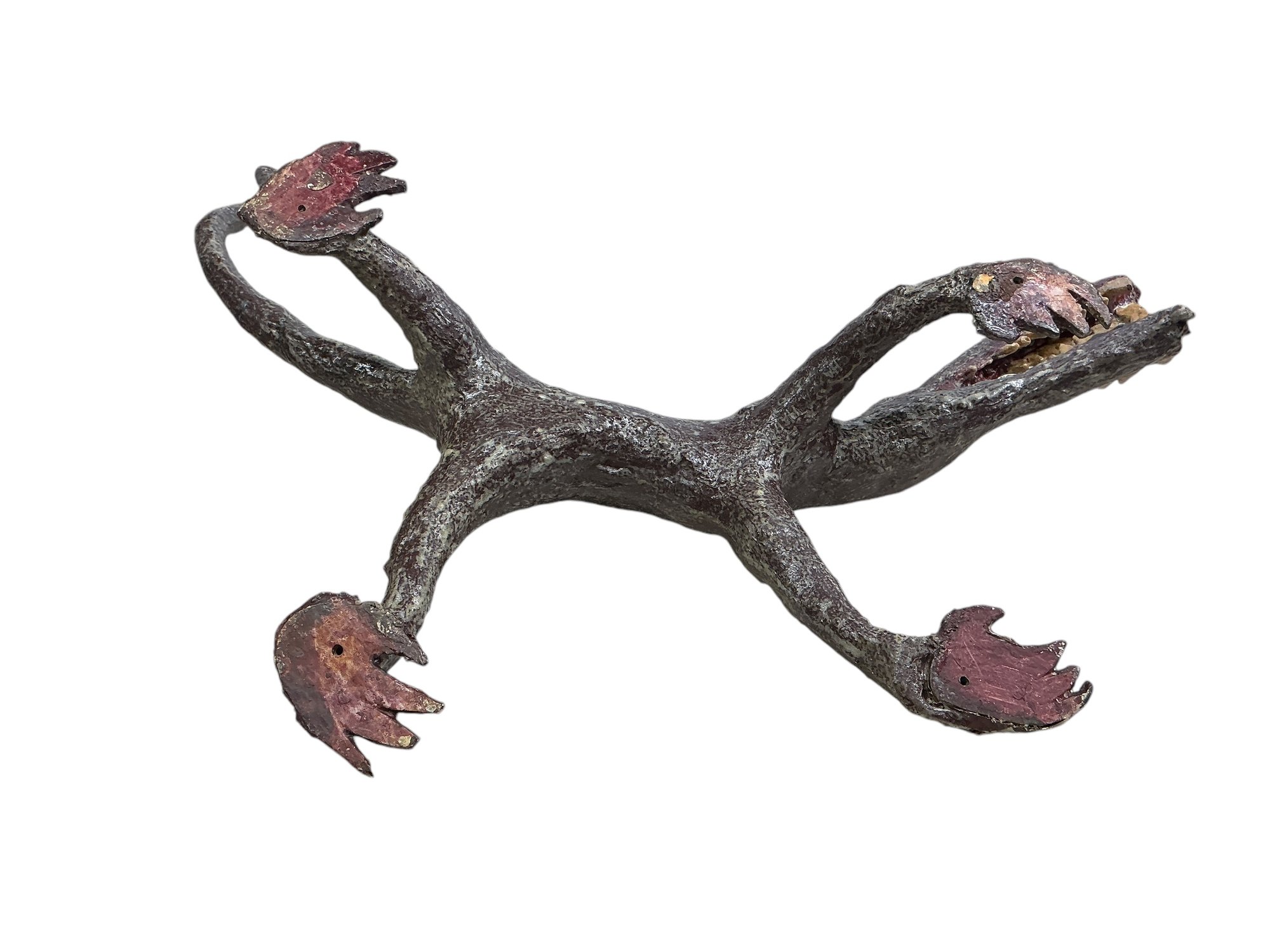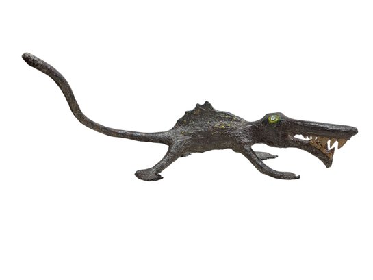 Large Folk Art Papier Mache Figure Of A Dinosaur Or Dragon 36 Inches Long. In good condition. It is approx. 36” long.
