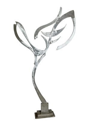 Large Free Standing Modern Art Steel Sculpture By Obie B Simonis Titled Lemon Tree. In very good condition. Signed, dated 1990 and titled “Lemon Tree” on the base. It is approx. 35.5” tall and 20” wide.