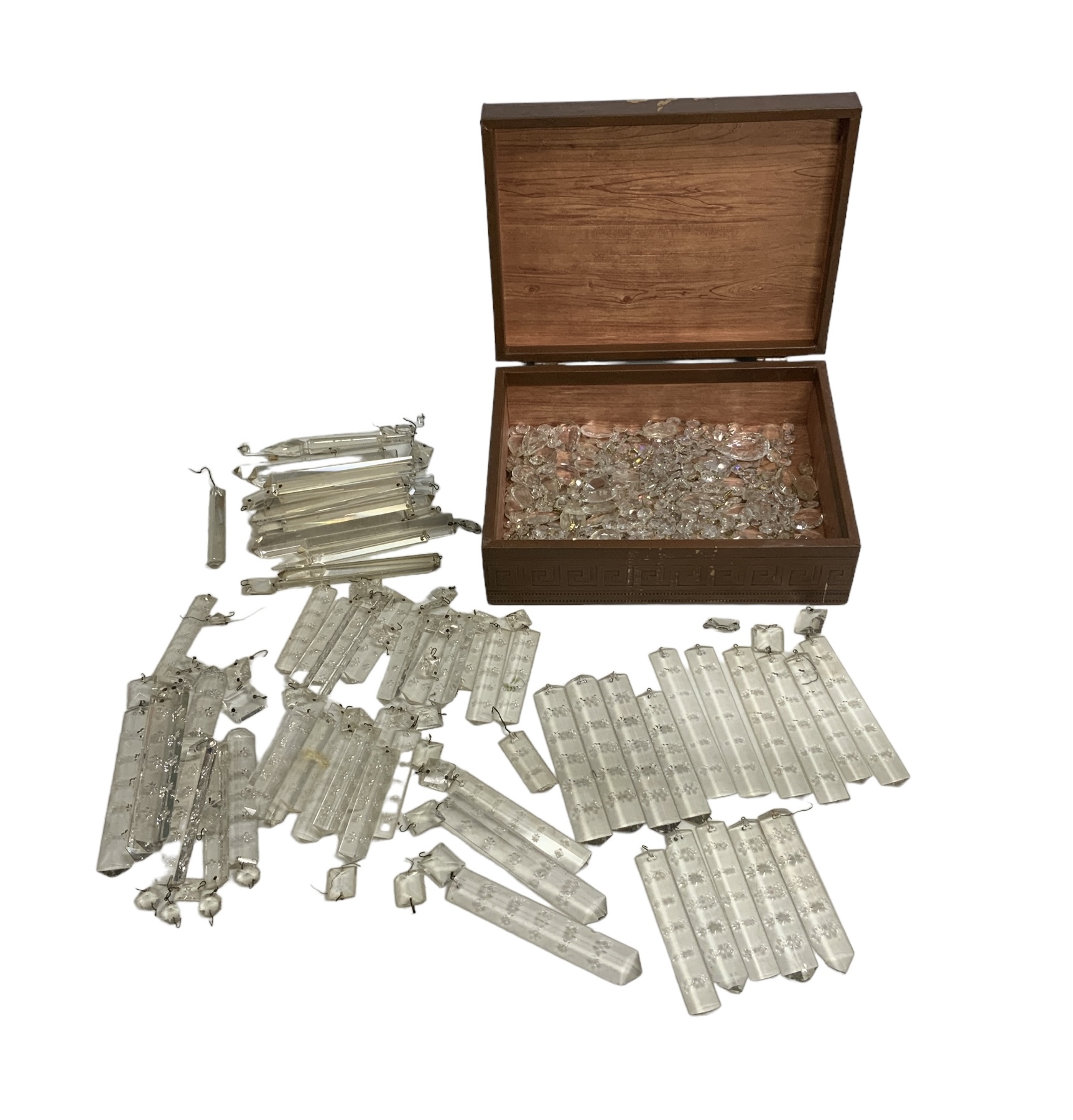 Large Lot Of Antique Etched and Plain Glass Prisms Great For Crafts. In various conditions some have chips or cracks, mostly in good condition. The longest ones are 6” long.