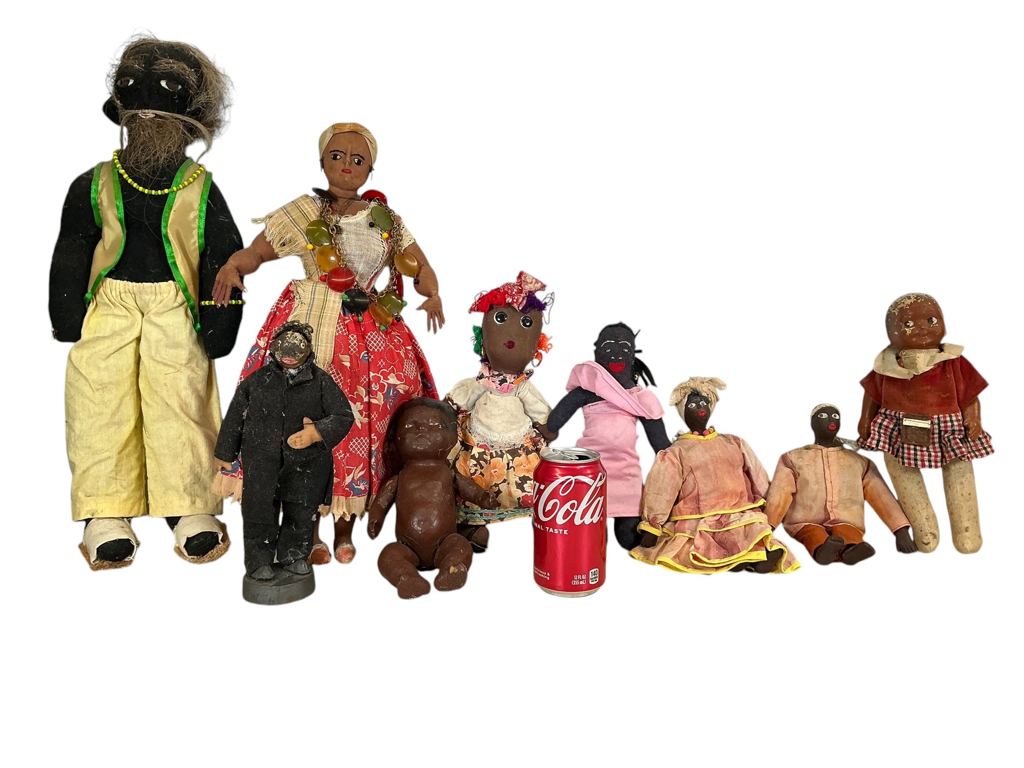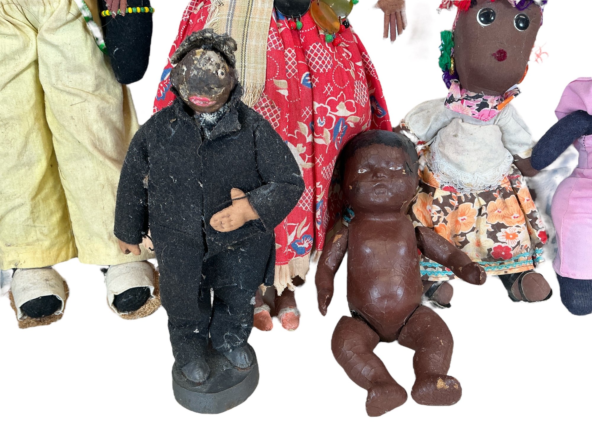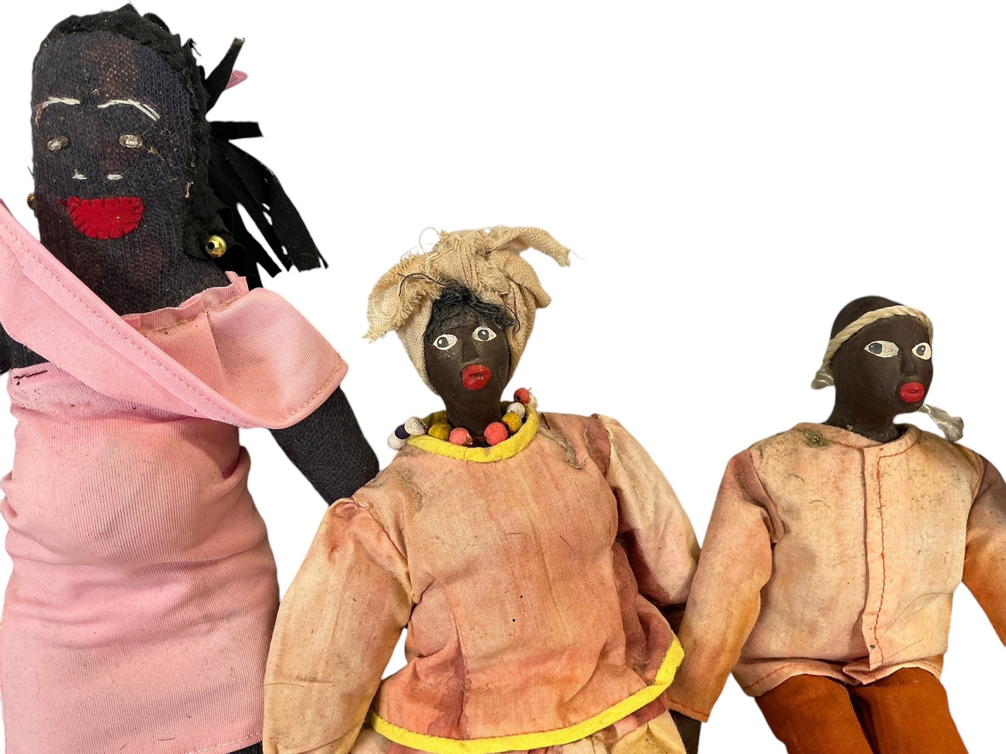 Large Lot Of Various Folk Art African American Cloth And Composition Dolls. All in fair to good condition with minor imperfections, wear, fading etc. Largest is approx. 21” tall.