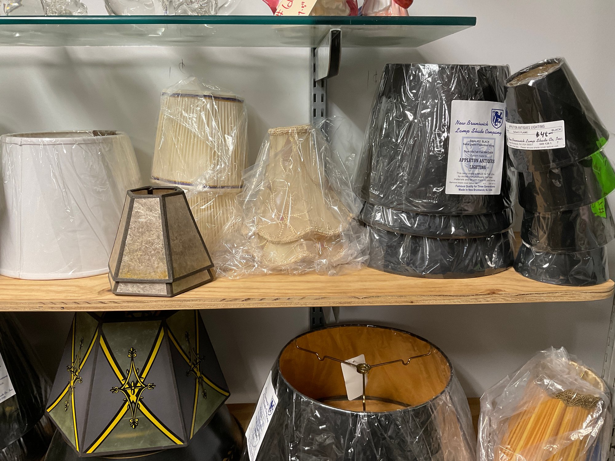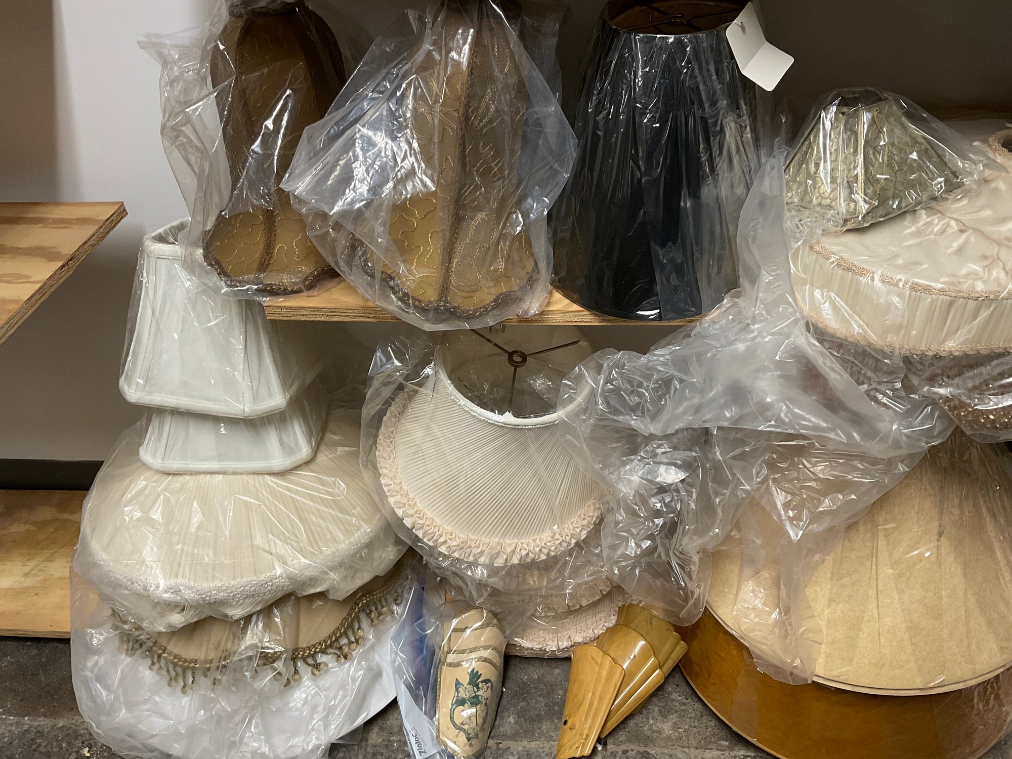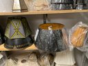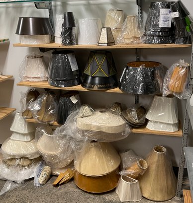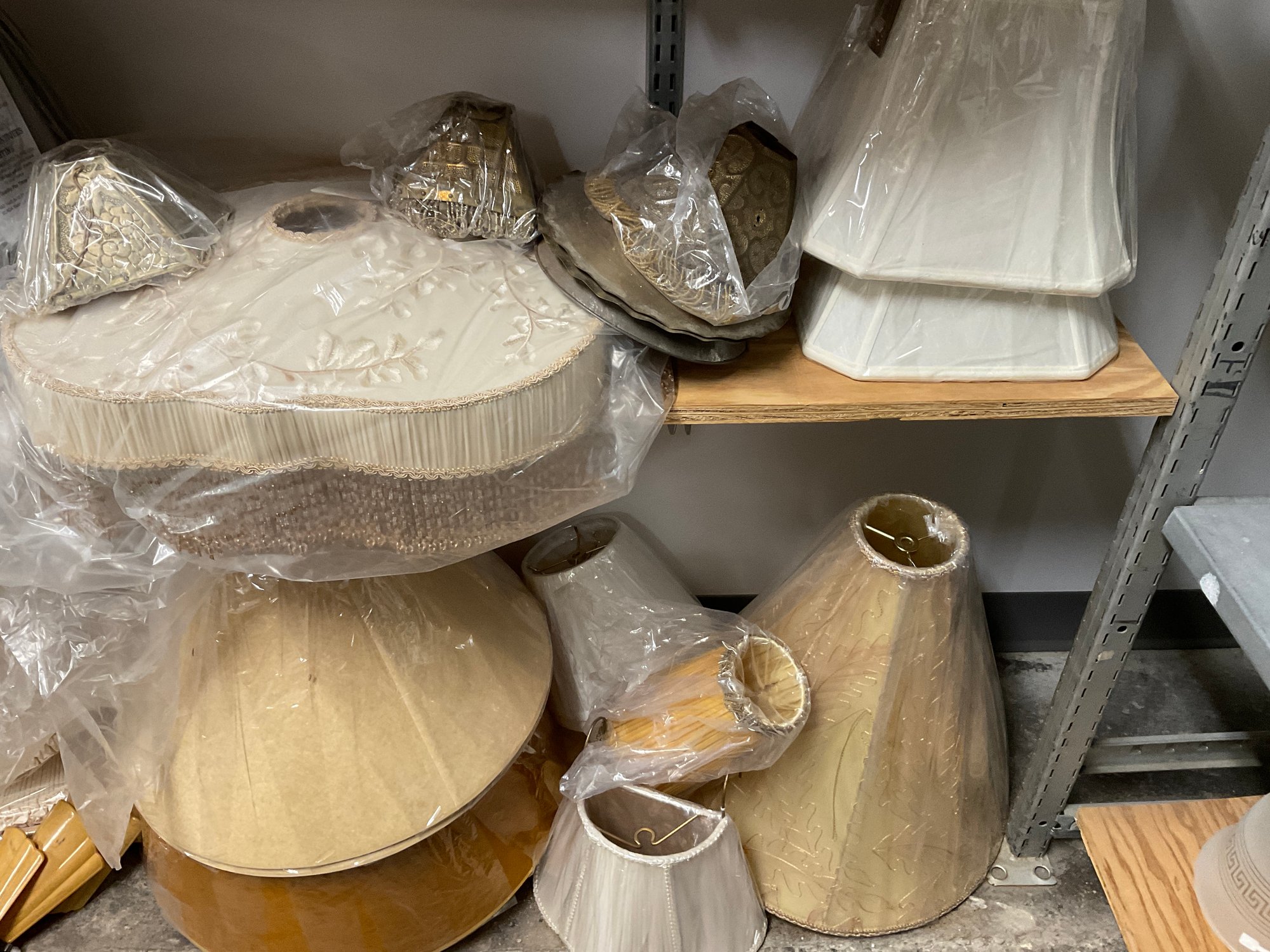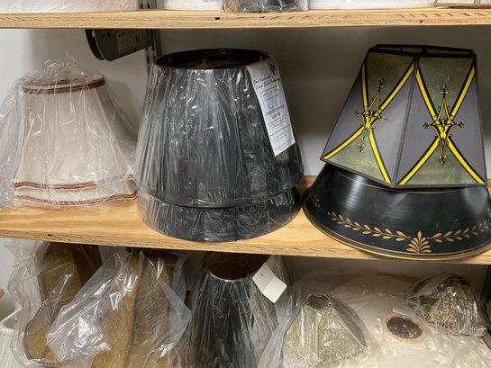 Large Lot Of Vintage And New Lampshades Cloth Punched Tin Beaded Etc. Most are new and in very good condition. Various sizes.
