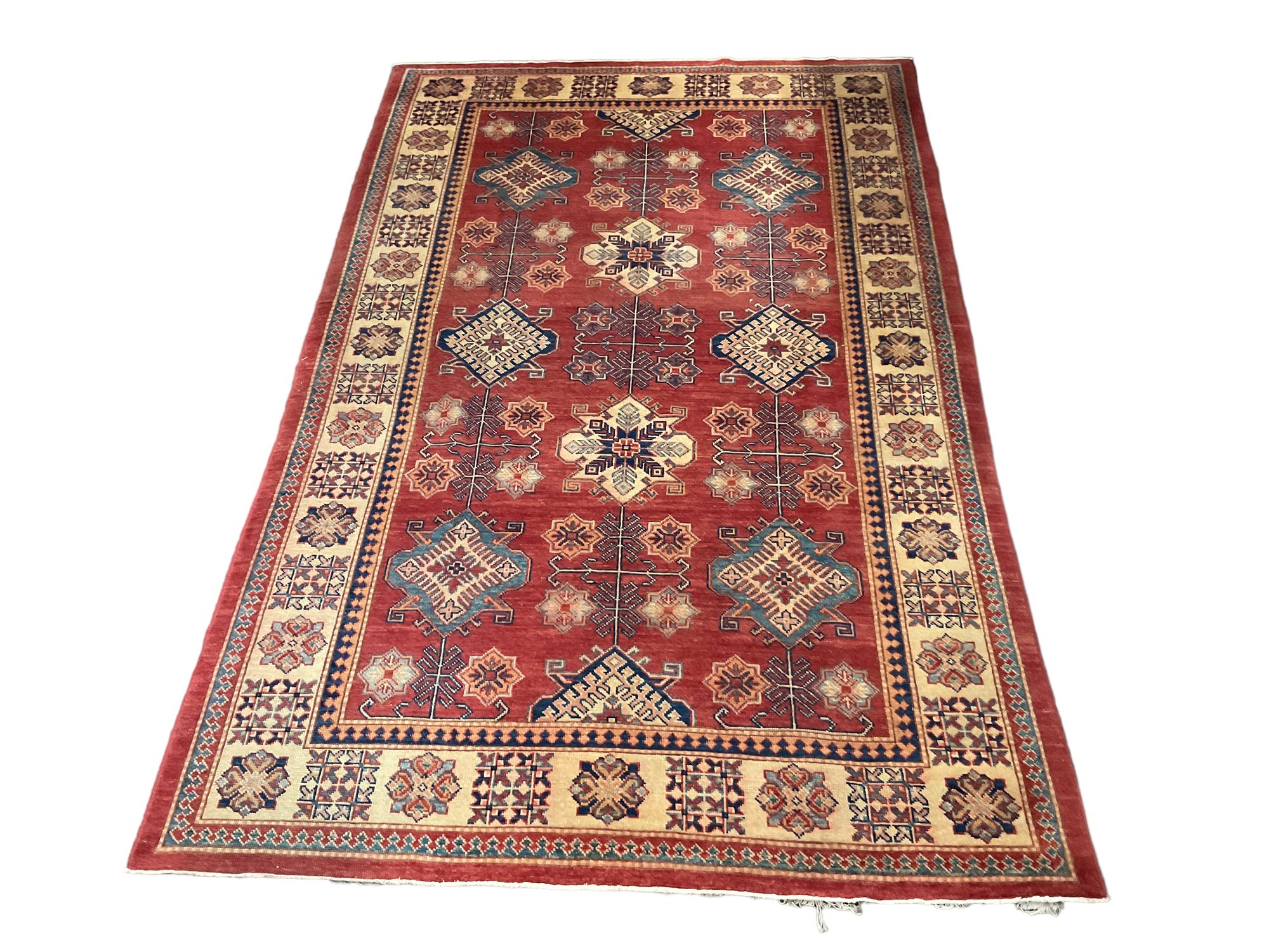 Large Wool and Cotton Hand Woven Rug, 6 x 9 feet. Excellent condition.