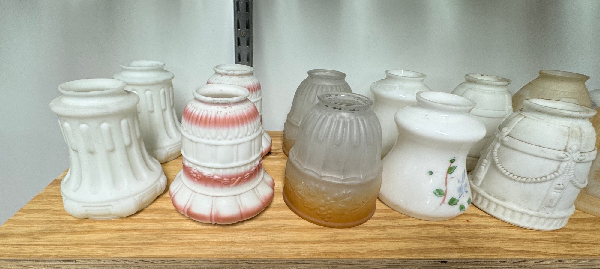 Lot Of 10 pair 20 total antique vintage glass light globes. The condition on most is very good, see pic with chip out of of one piece. Approximate overall size is 5" x 5"