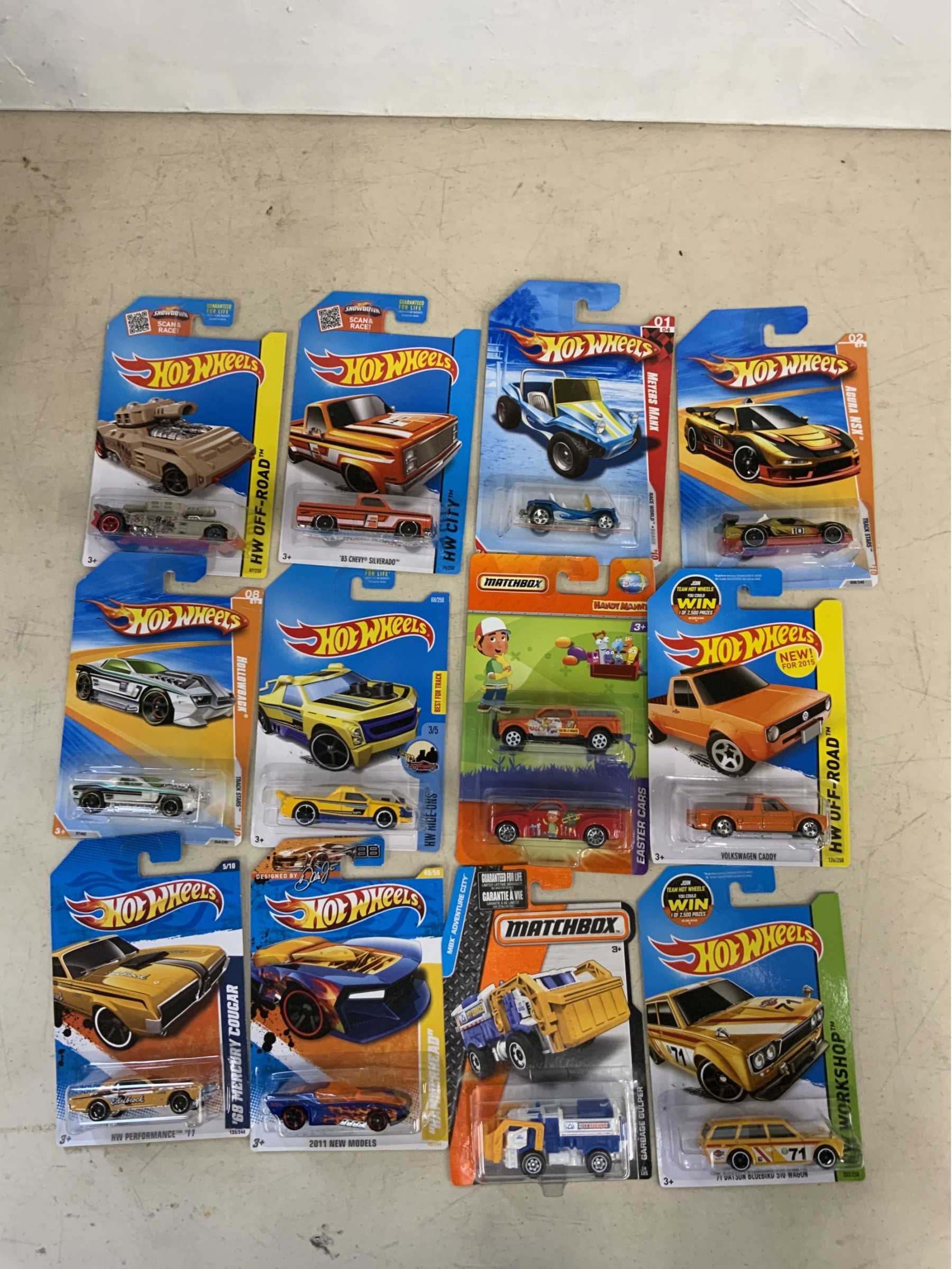 Lot Of 12 Modern Hot Wheels Cars D, WYSIWYG, all new in original boxes.