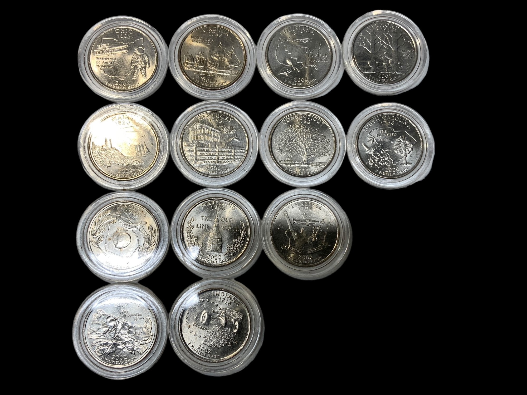 Lot Of 13 State Quarters In Holders, see photos for condition.