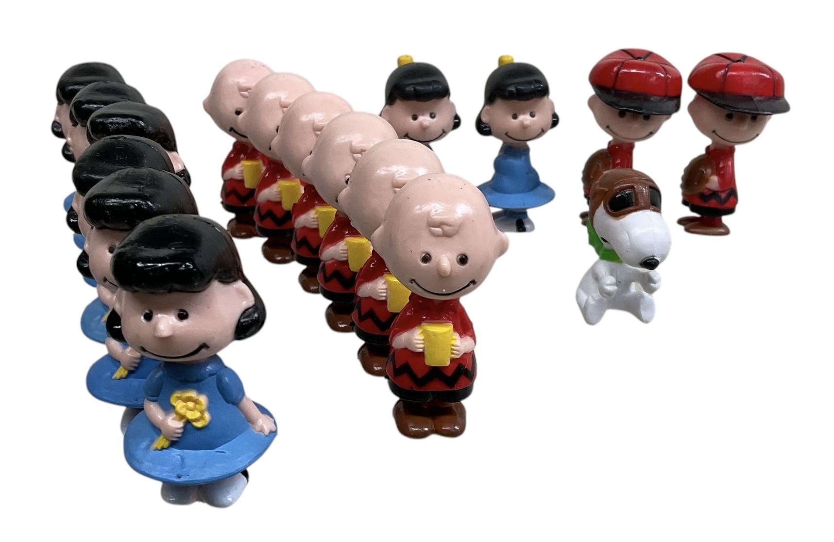 Vintage Peanuts Rubber Figures Snoopy Charlie Brown And Lucy. All in good condition. Each is approx. 2.25” tall. Seventeen figures in total.