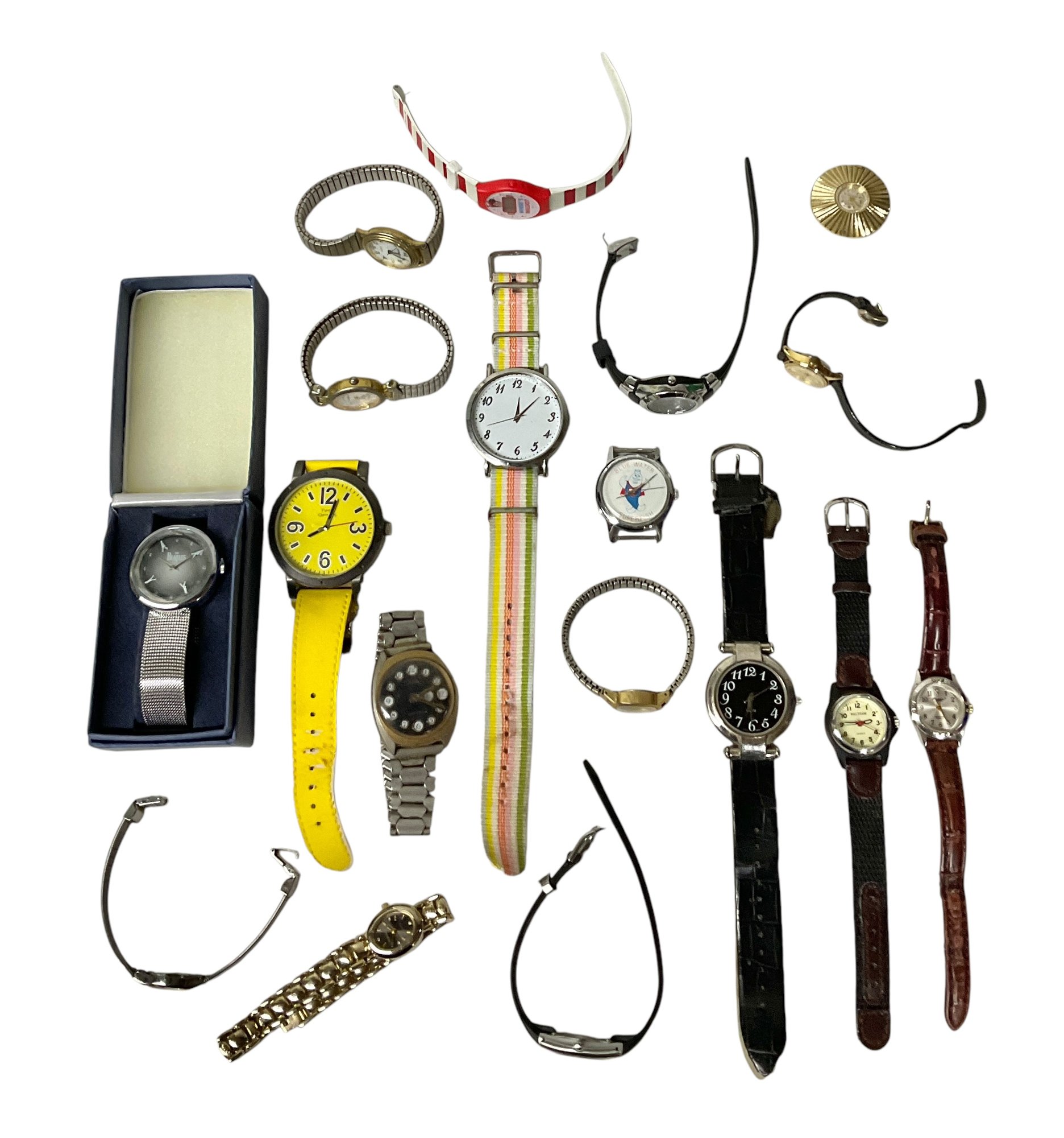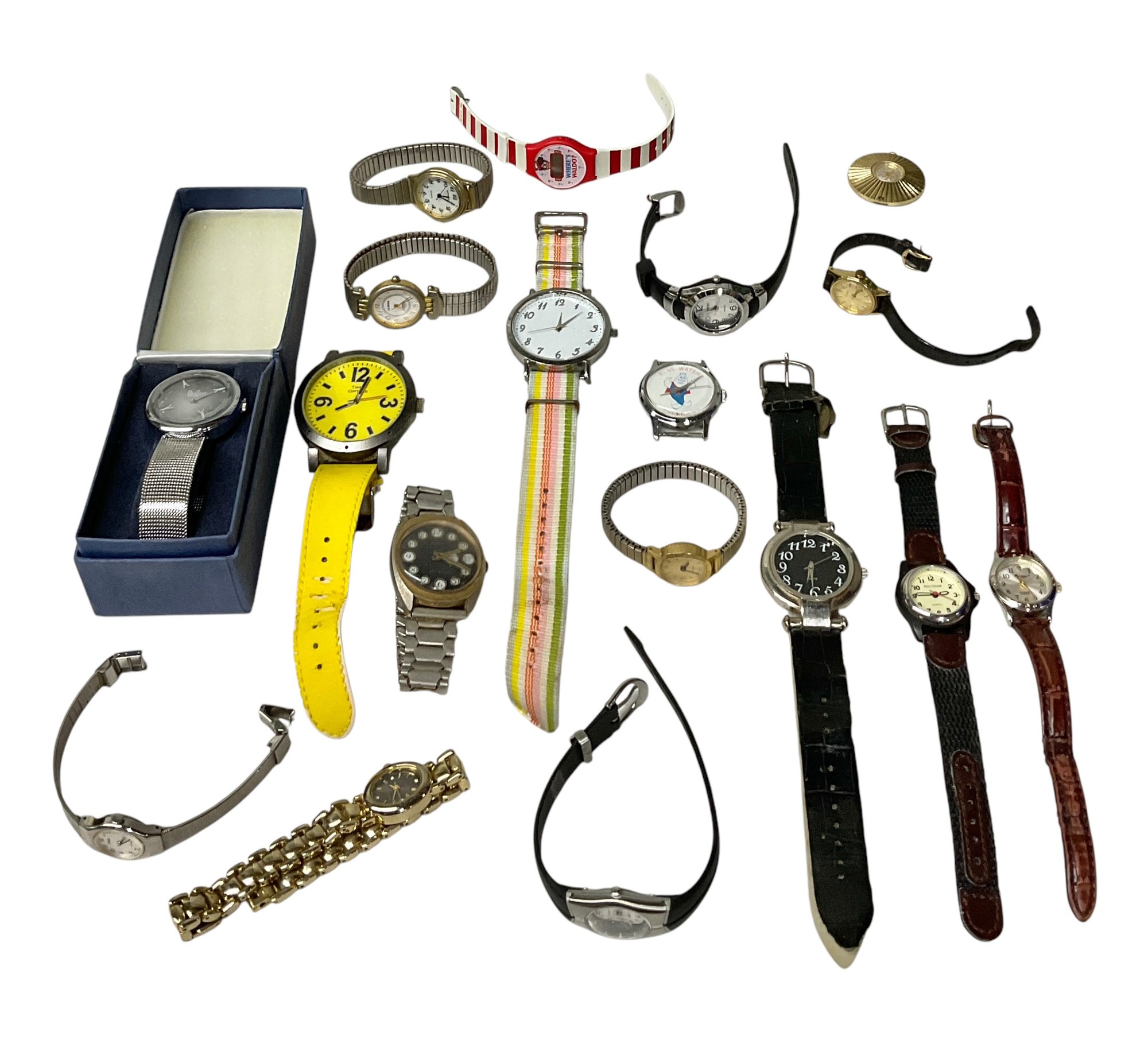 Lot Of 18 Vintage Assorted Watches. Includes a commemorative The Beatles watch made by The Bradford Exchange, in its original box. None of the watches have been tested. Please view photos for more details.