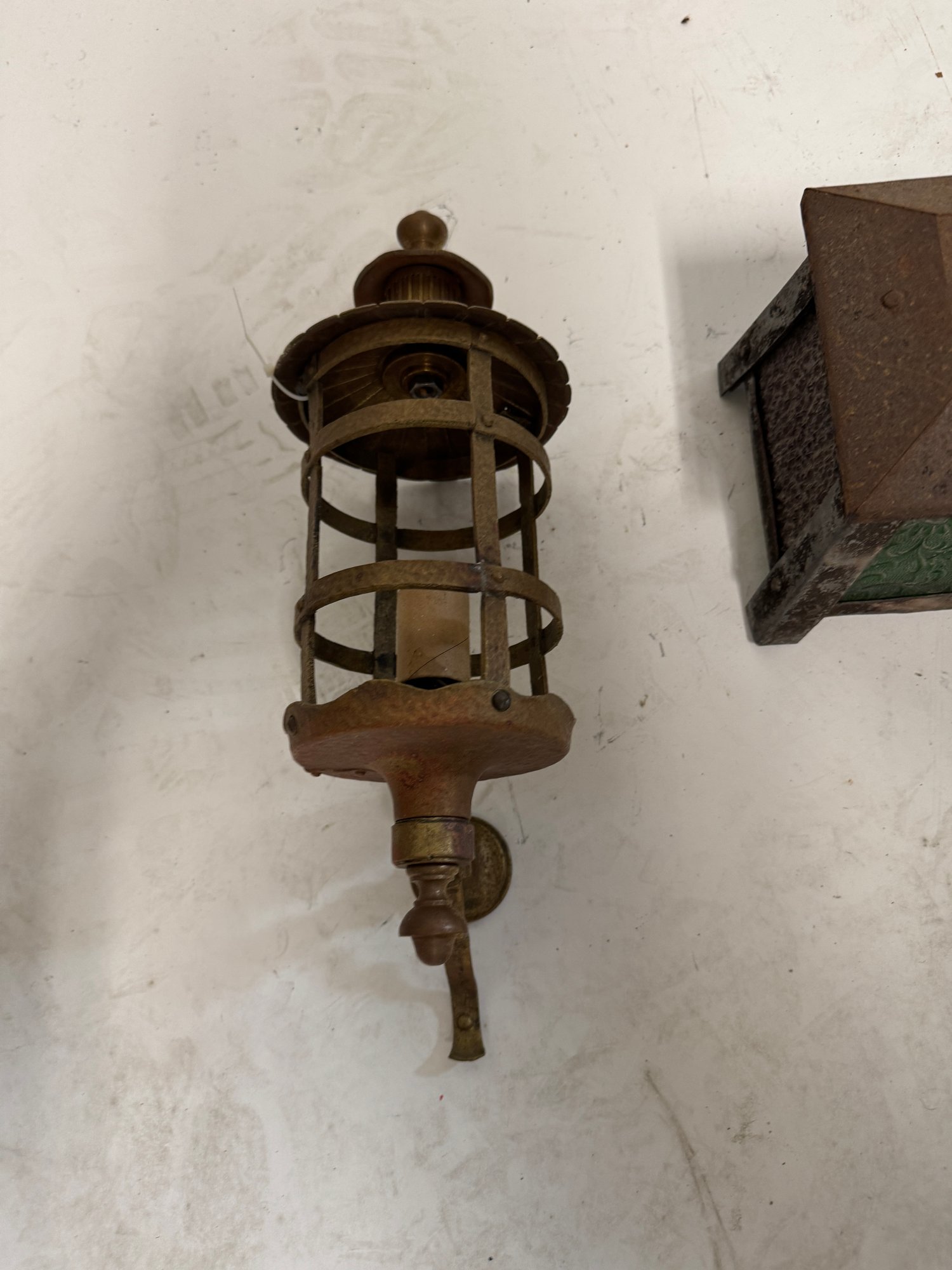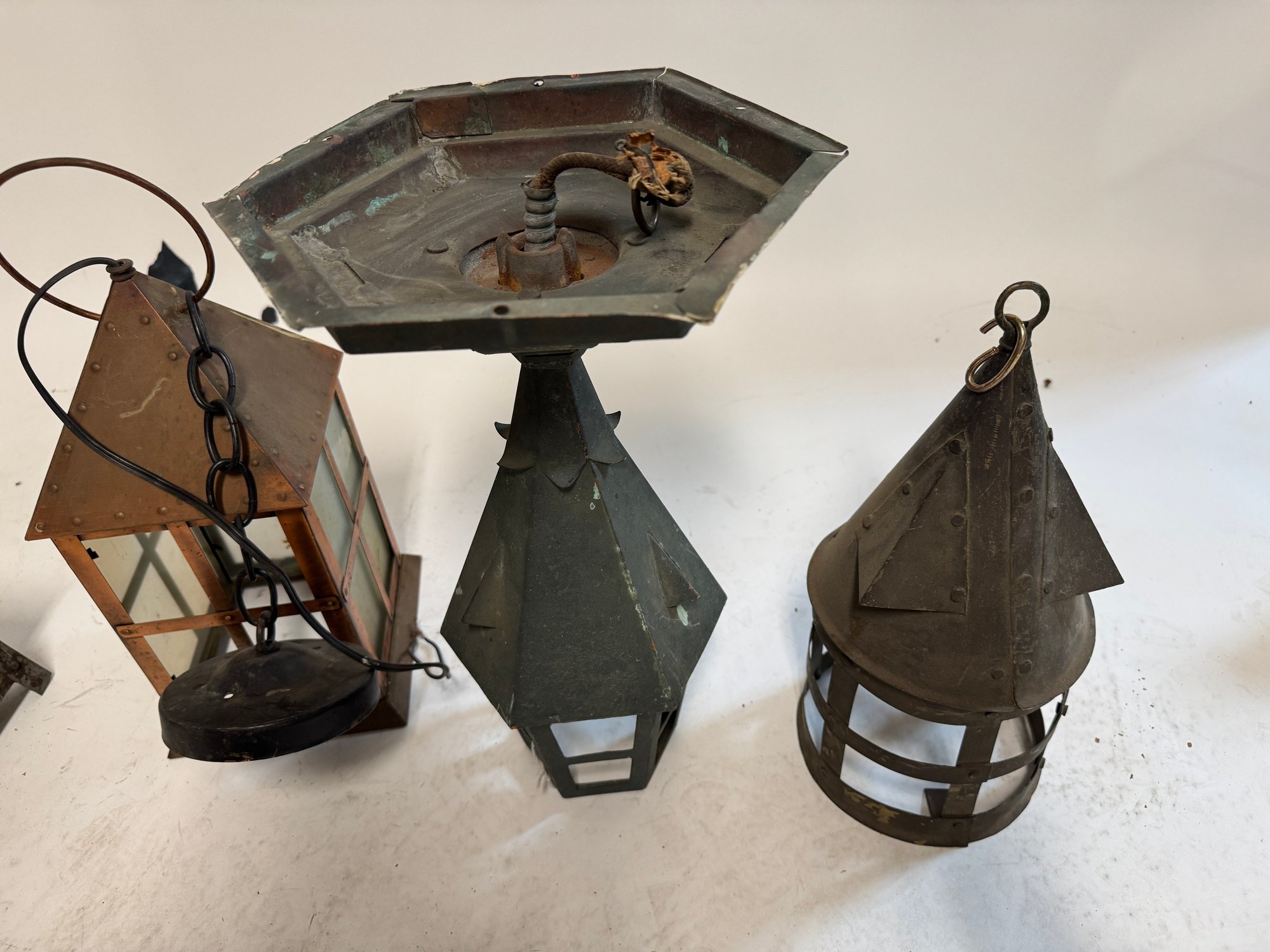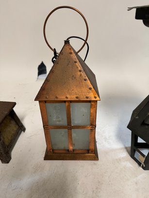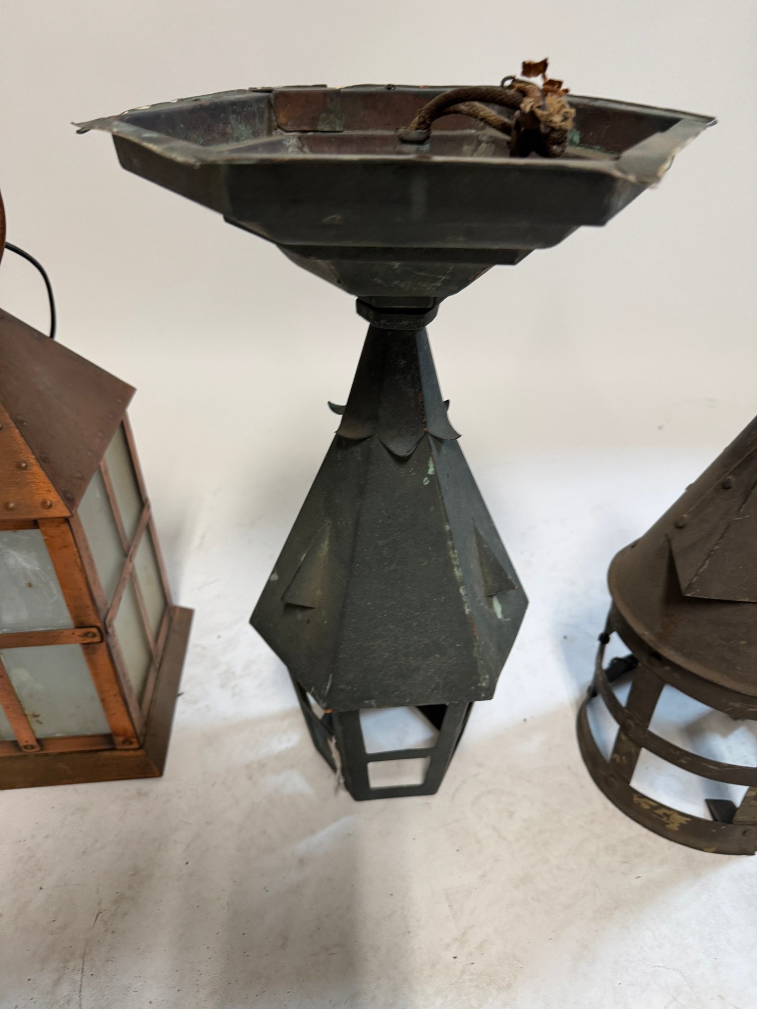 lot of 5 antique/Vintage Lanterns, Stained Glass etc. The little stained glass one has all of it's panels. We LOVE these, they're not perfect, but they're so much fun! The largest is 16" x 11"