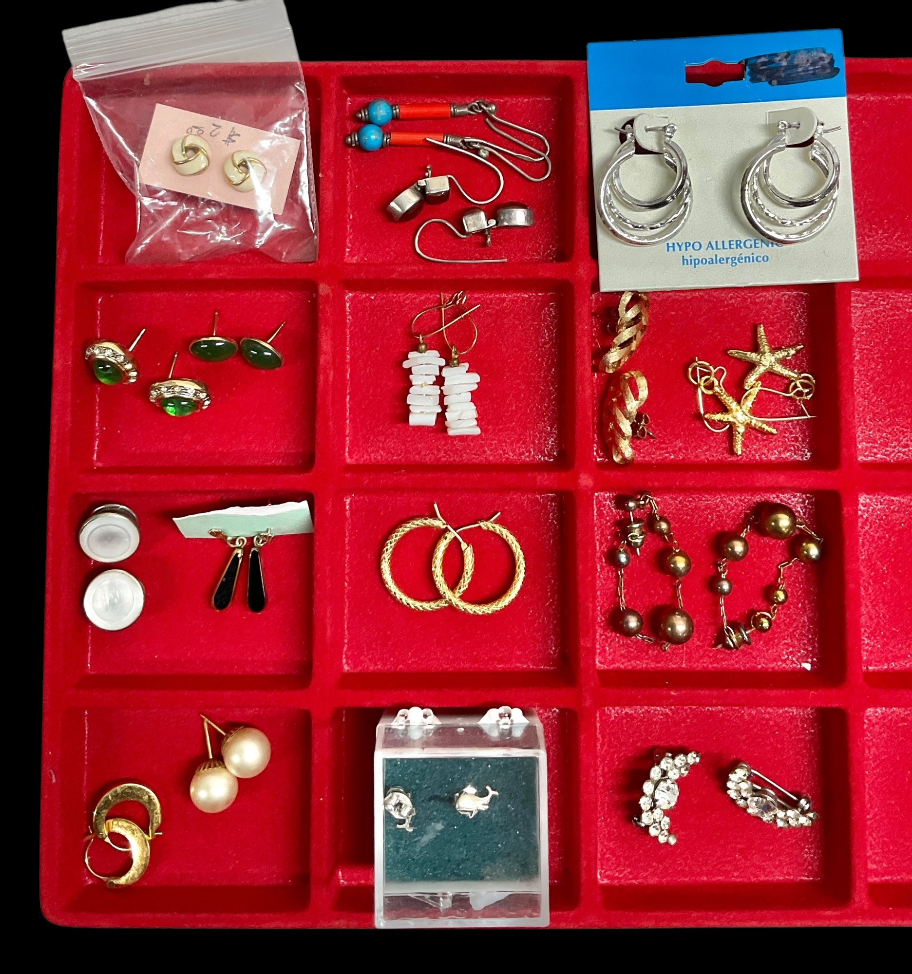 Lot Of Assorted 17 Pairs Of Vintage post Earrings. Post back earrings, range in shape, size and style. Please see photos for details. Container not included.