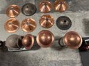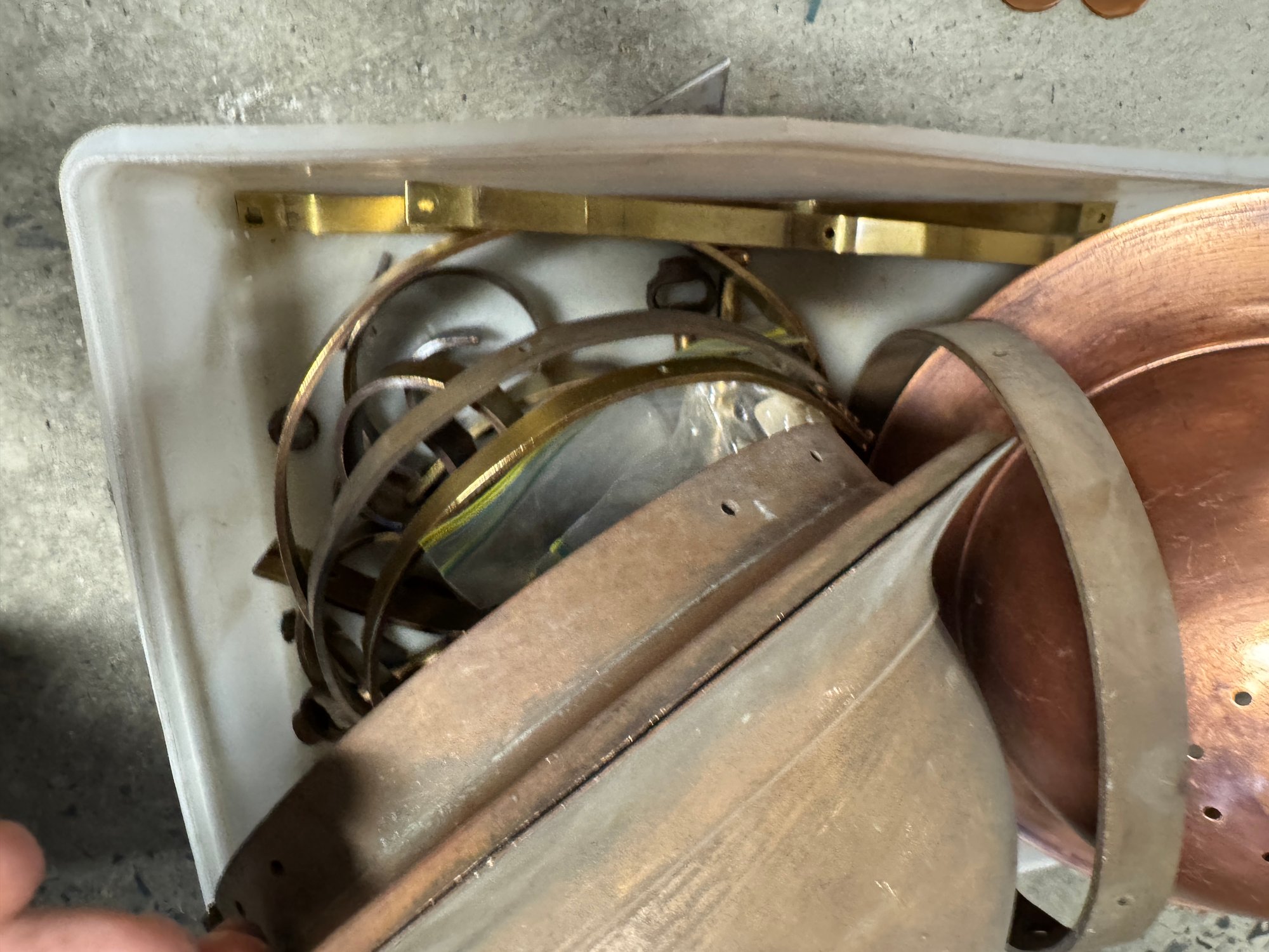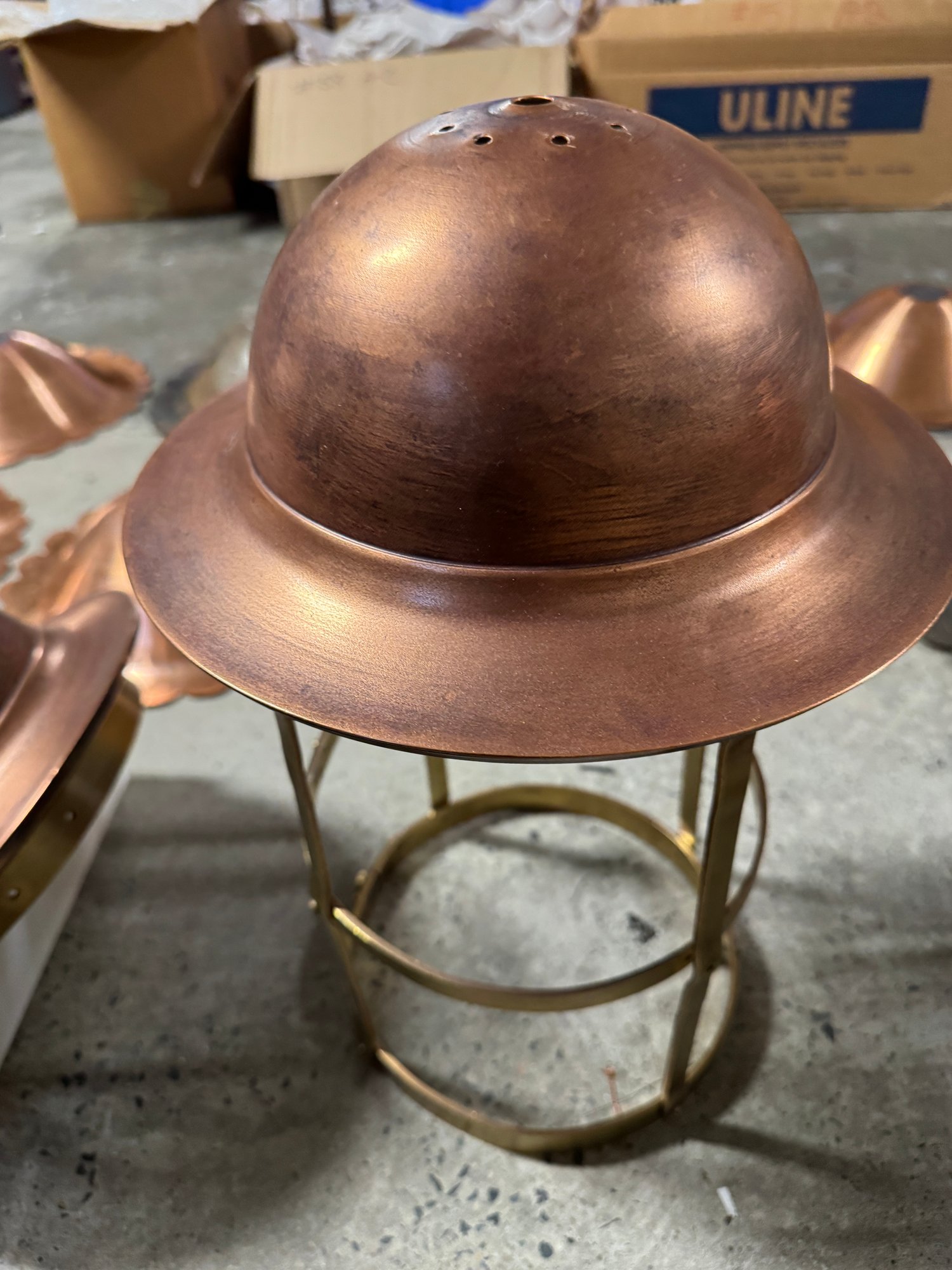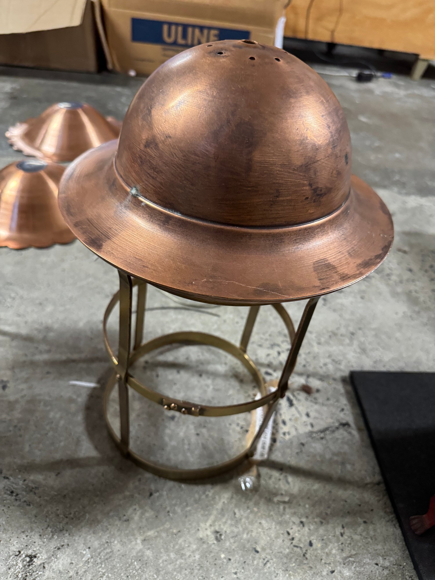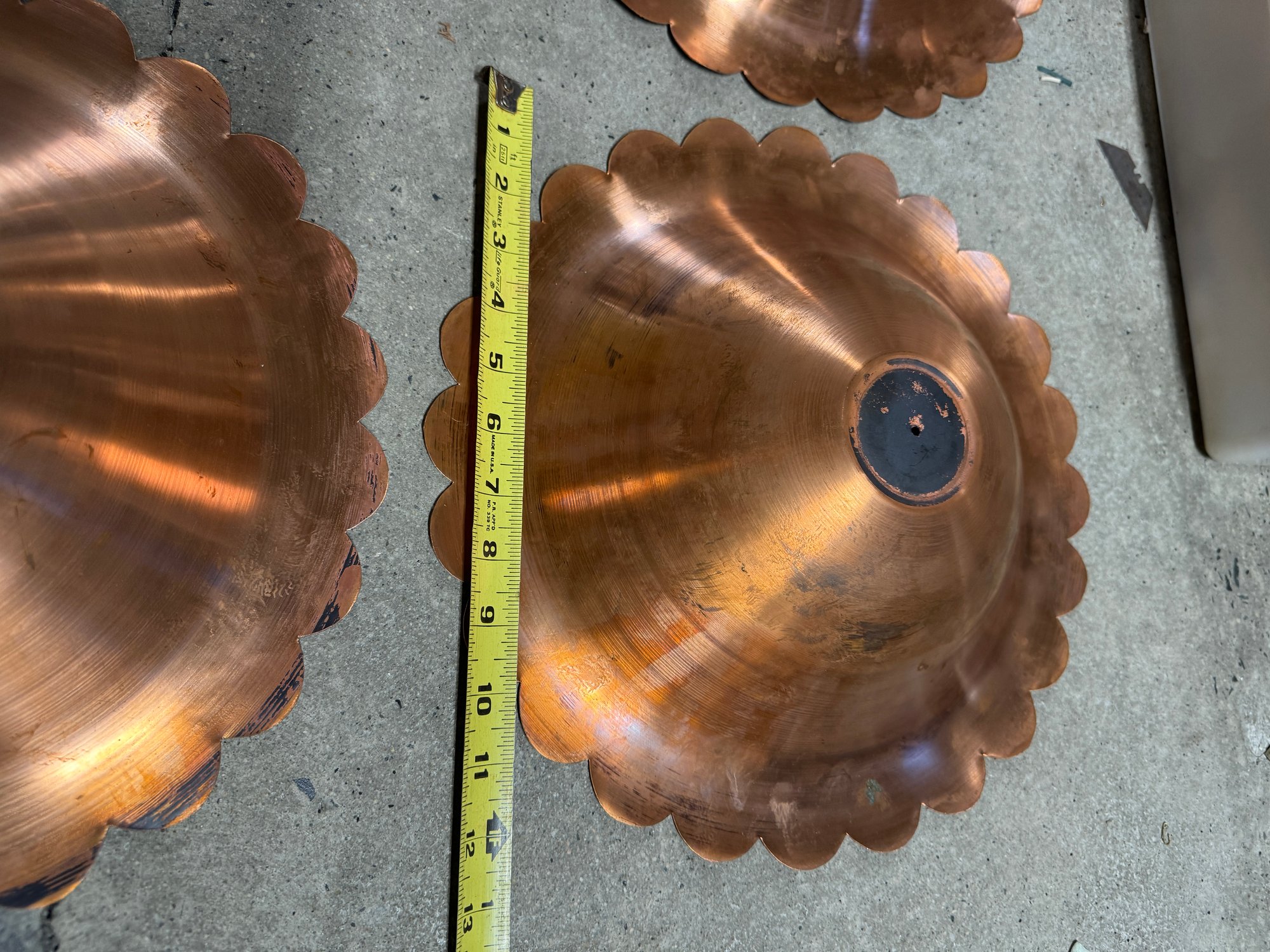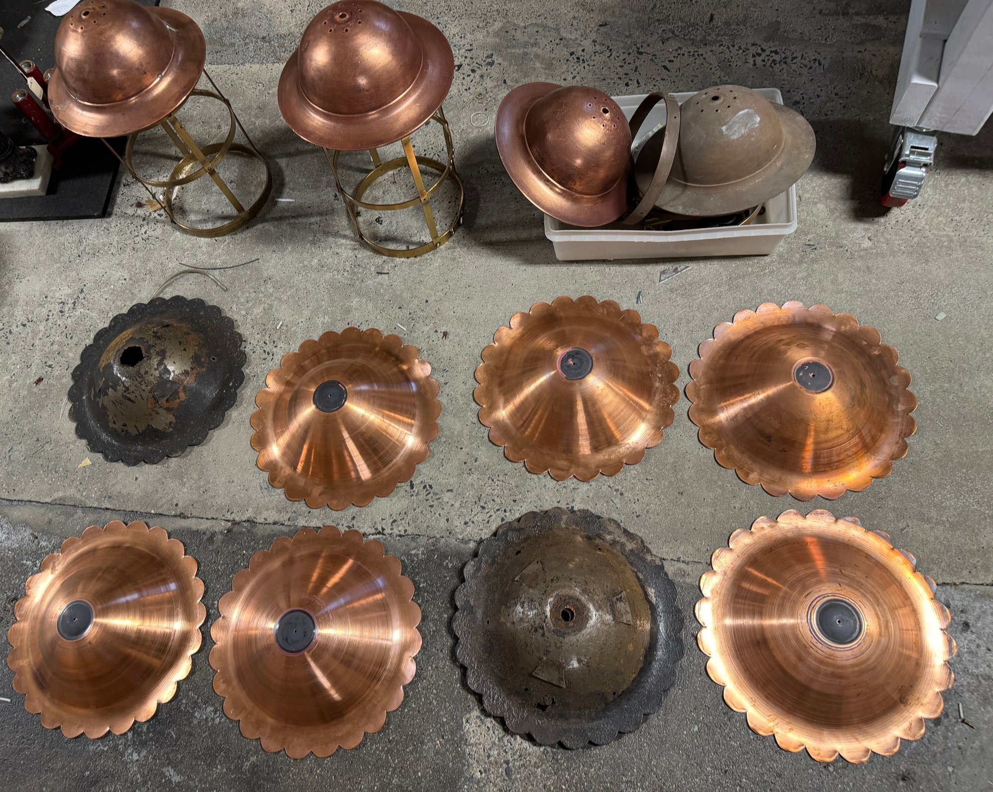 Lot of Copper etc Lamp Parts etc. - We're not quite sure how or if these pieces all go together, but you get everything you see in the pics, and that's quite a bit of solid copper. The large discs are 13" diameter.