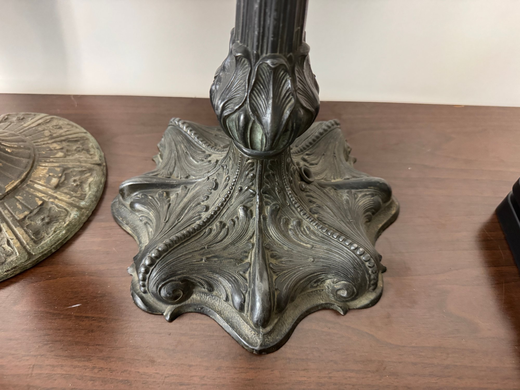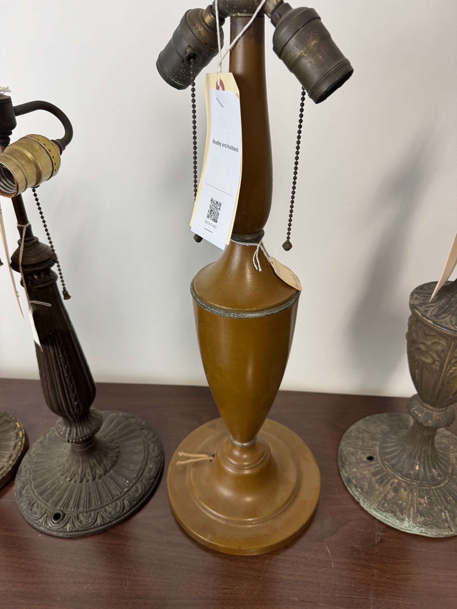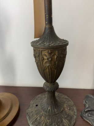 Lot Of Five Antique Copper Iron In Metal Lamp Bases. The tallest is 22” B&H, Miller etc. See pics for conditions, all unwired.