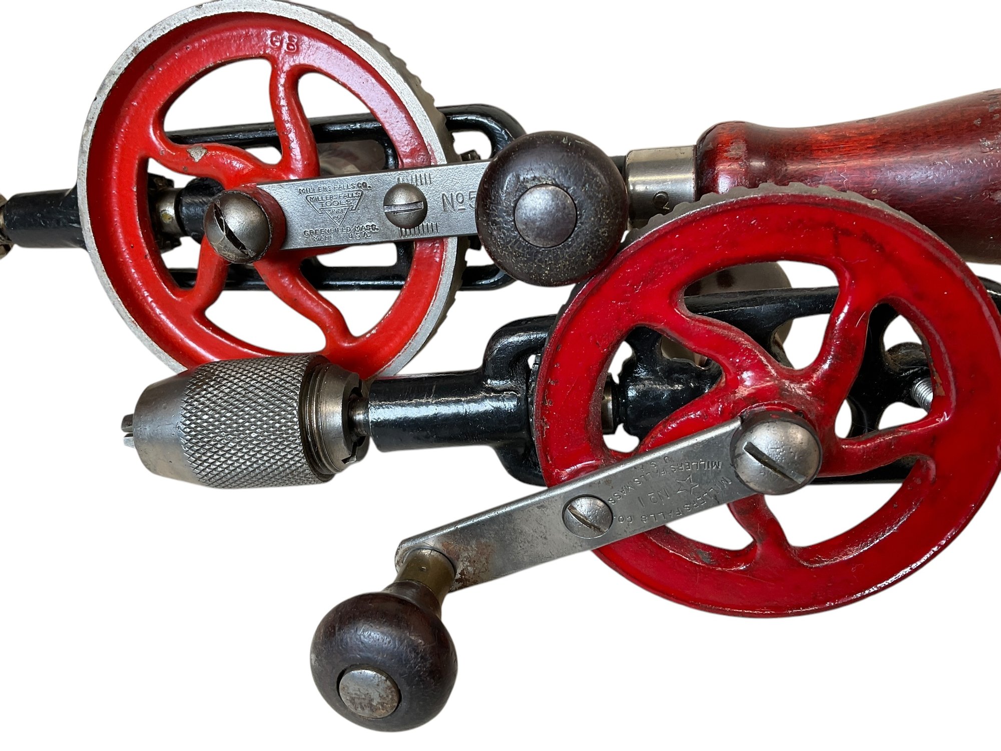 Lot Of Four Vintage Millers Falls Hand Drills No. 1 No. 3 No. 5. All in good used condition. Each is approx. 13” long.