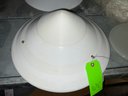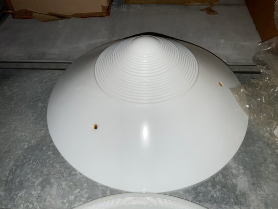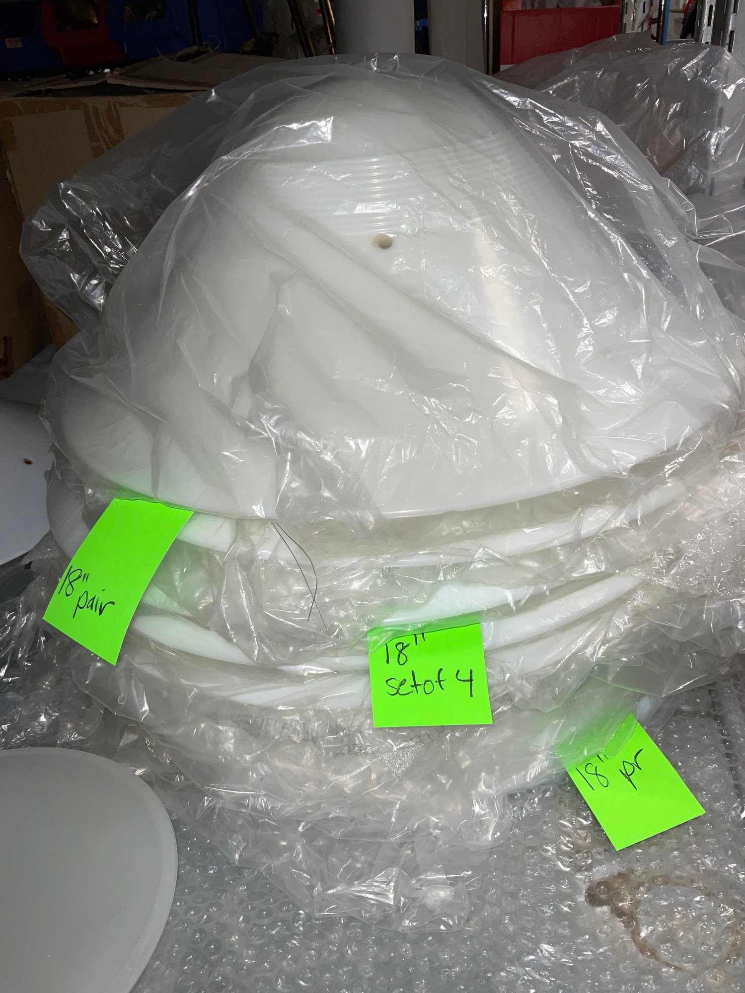 Lot Of Twelve Vintage Milk Glass Ceiling Mount Shades. All in good used condition but may have wear and small chips. Largest diameter is approx. 18”.
