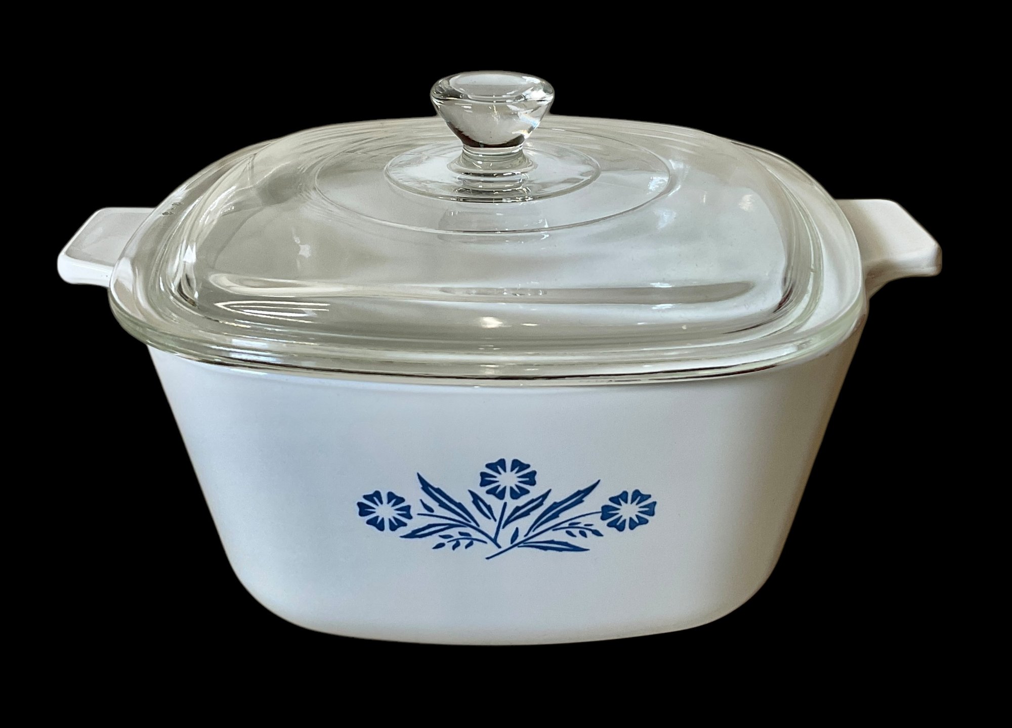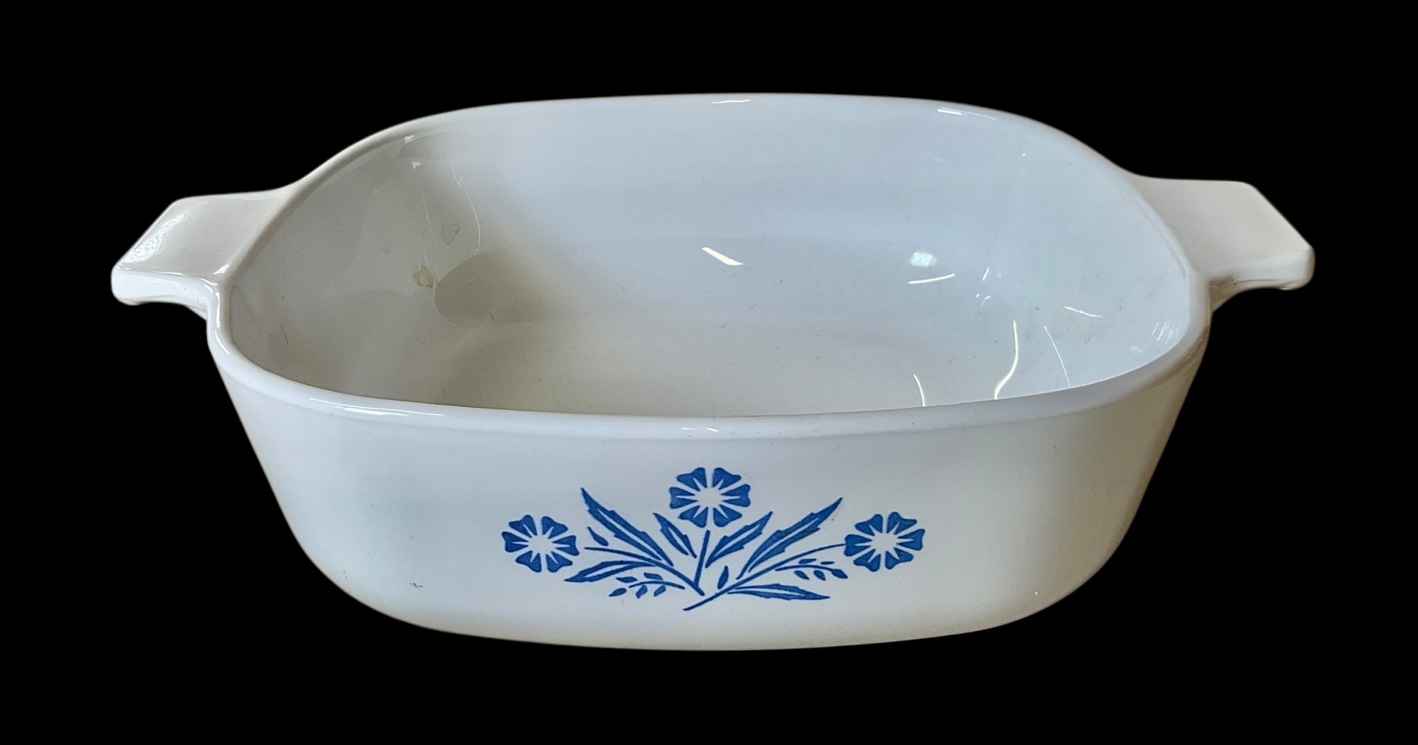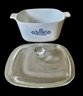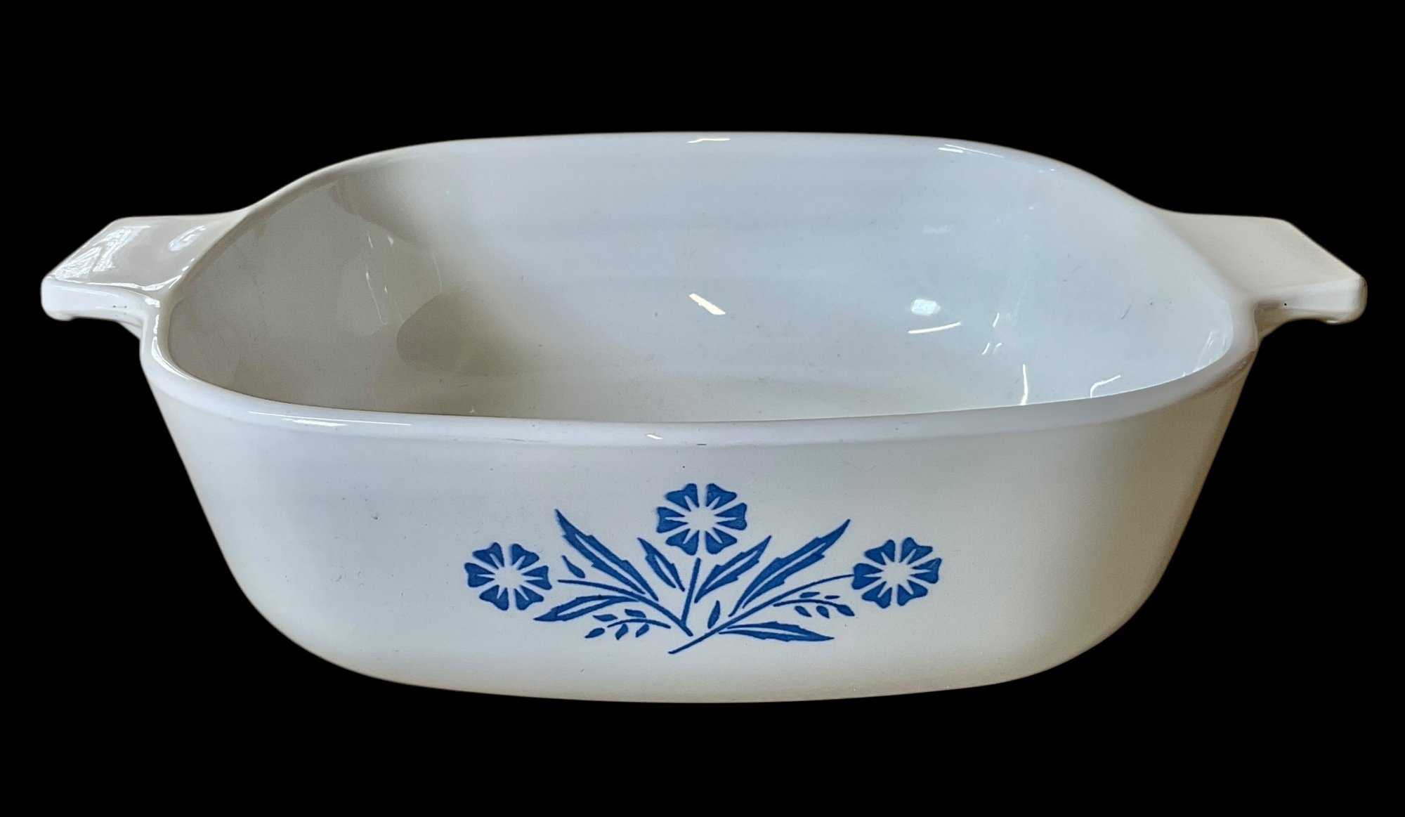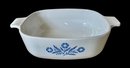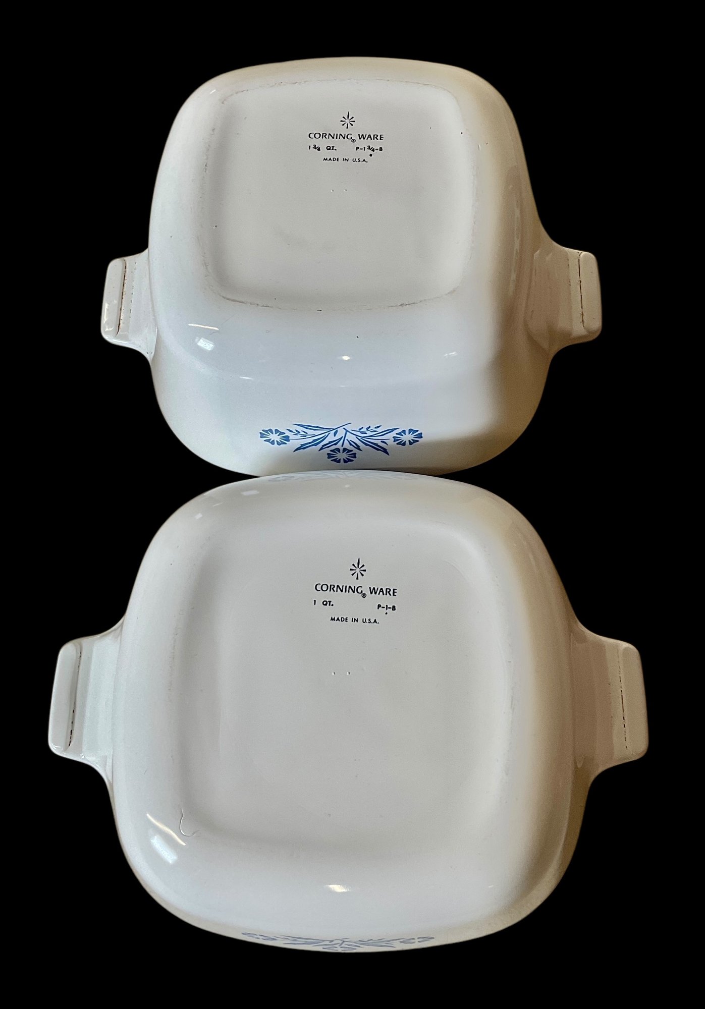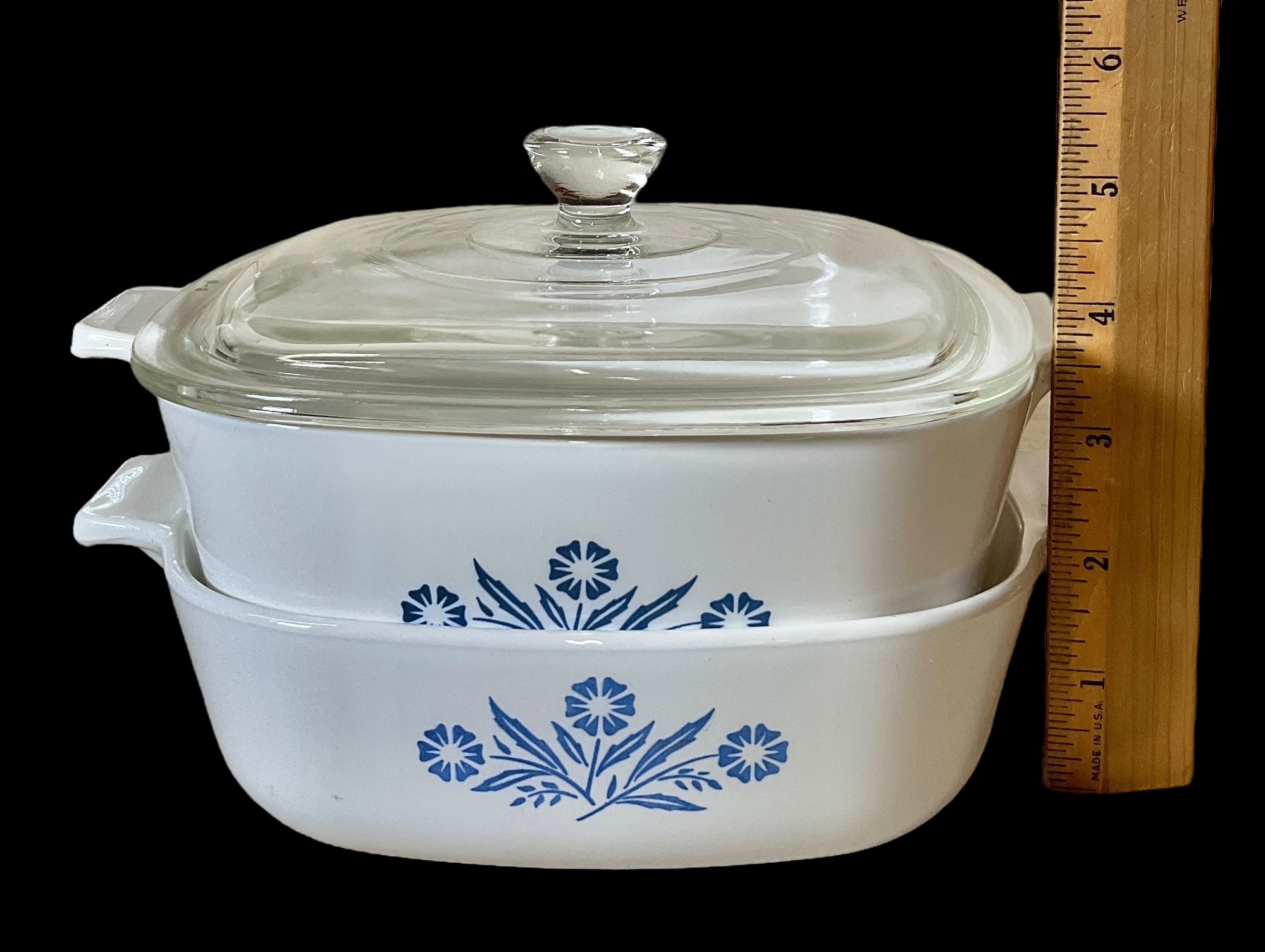 Lot Of Two Corningware Blue Cornflower Baking Dishes. Both feature the popular Blue Cornflower design and can stack on top of each other. One is a deep casserole dish which comes with its original glass lid and one is a baking dish. No visible cracks or scratches. Each dish measures approximately 8.75” wide from handle to handle.