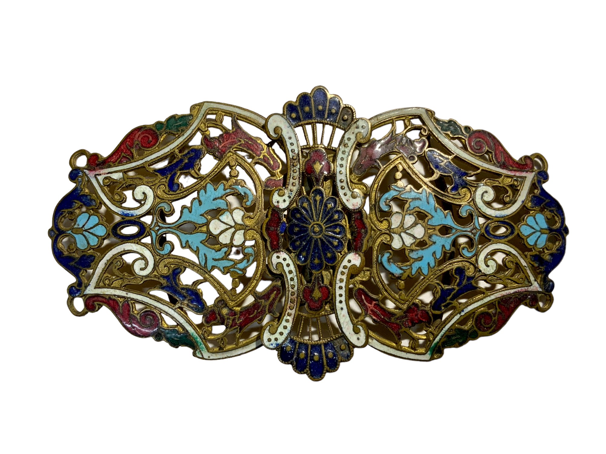 Metal and Enamel Victorian Buckle, 4.25 inches across