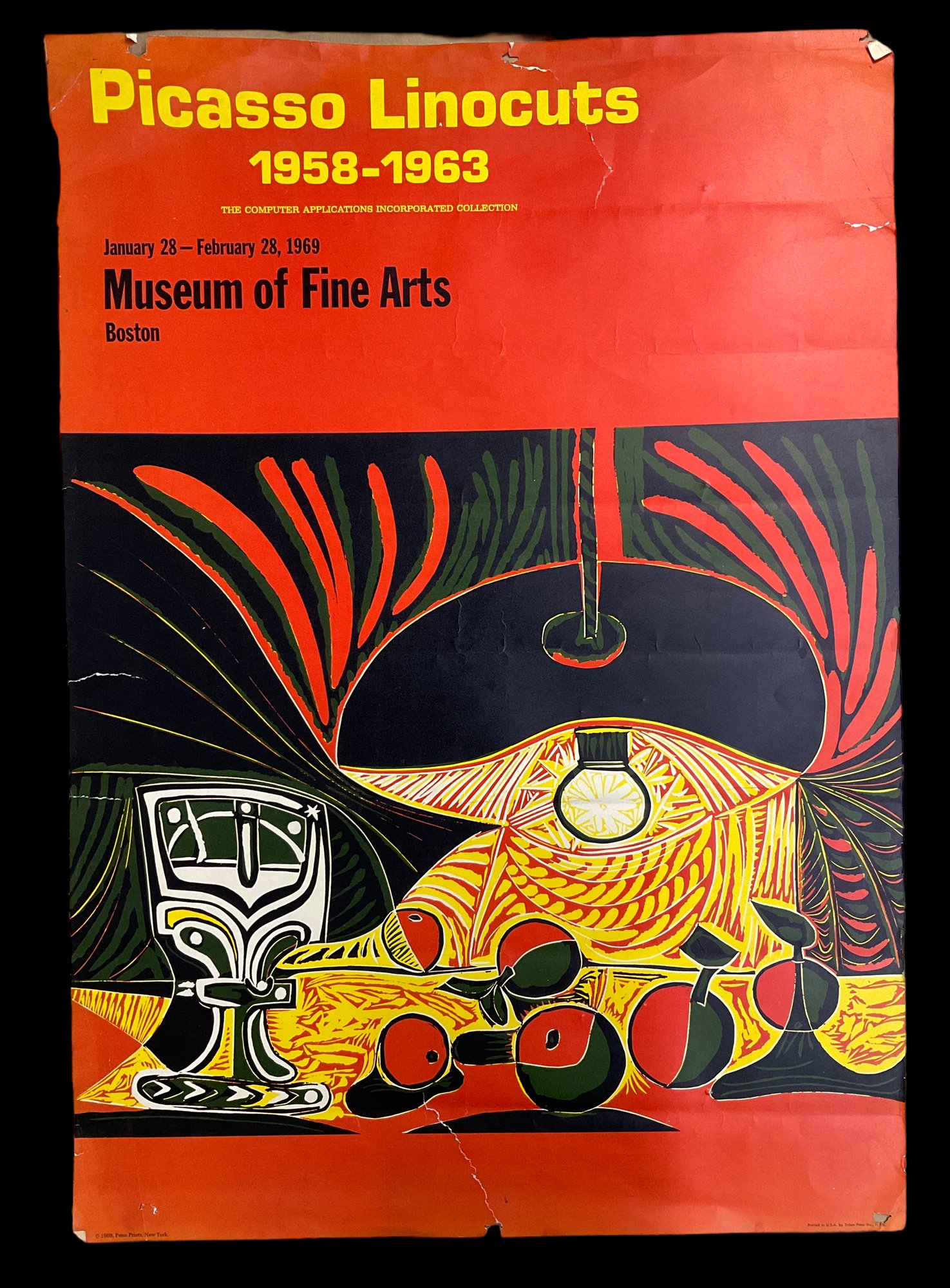 MFA 1968 Picasso Linocuts Exhibit Poster Boston MA. Museum of Fine Arts Boston. Measures 28.5”x 20”. Shipping available on this lot.