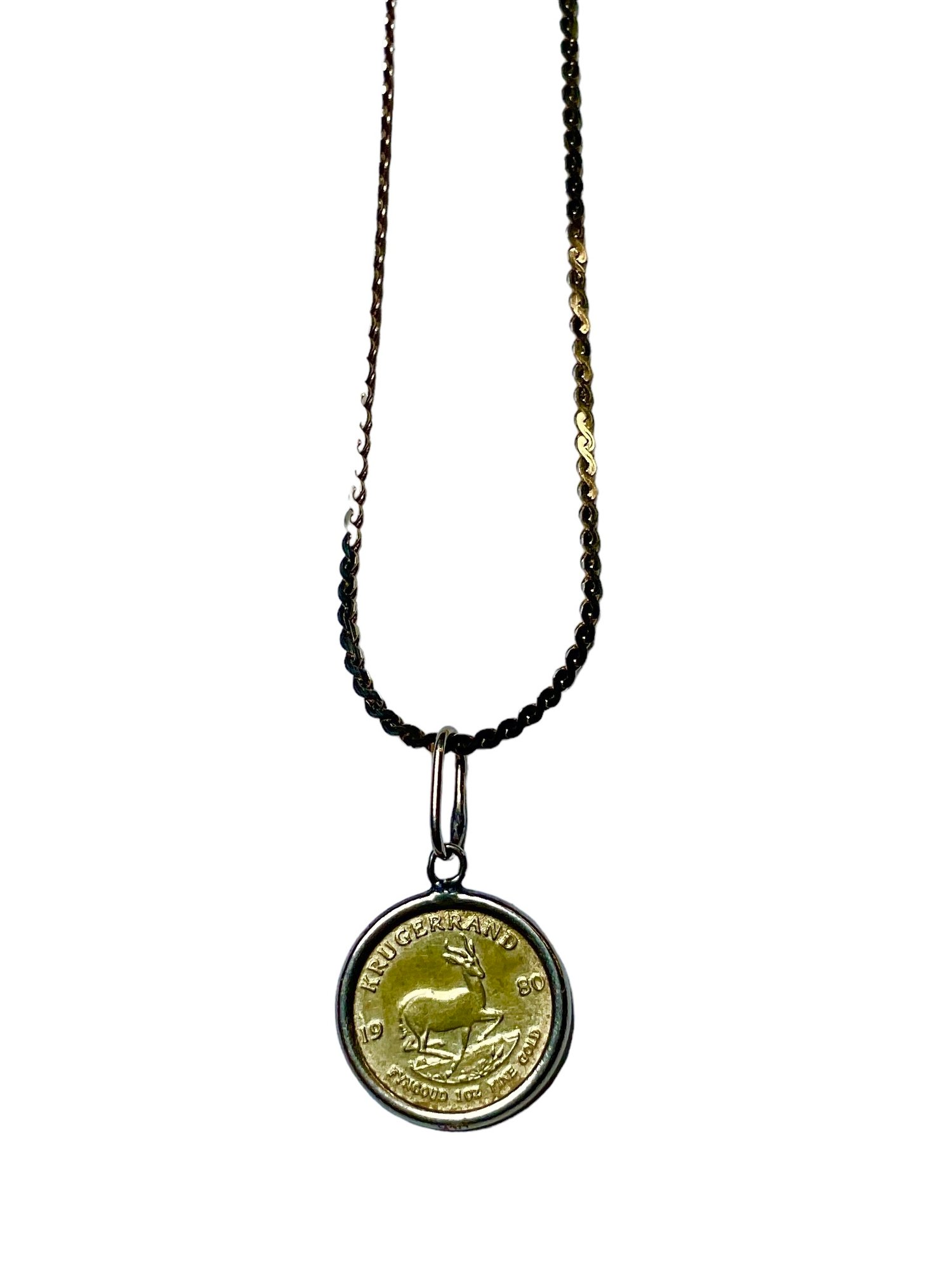 Miniature 1980 22KT Gold Krugerrand Coin On 14KT Bracelet, bracelet measures 7” in length. Total weight is .7 dwt.