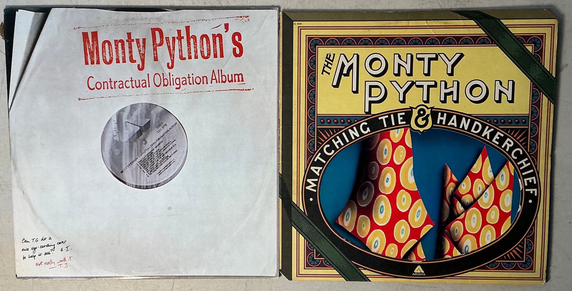 Monty Python Albums Contractual Obligation And Matching Tie And Handkerchief. Arista Records 4039, AL5-8182.
