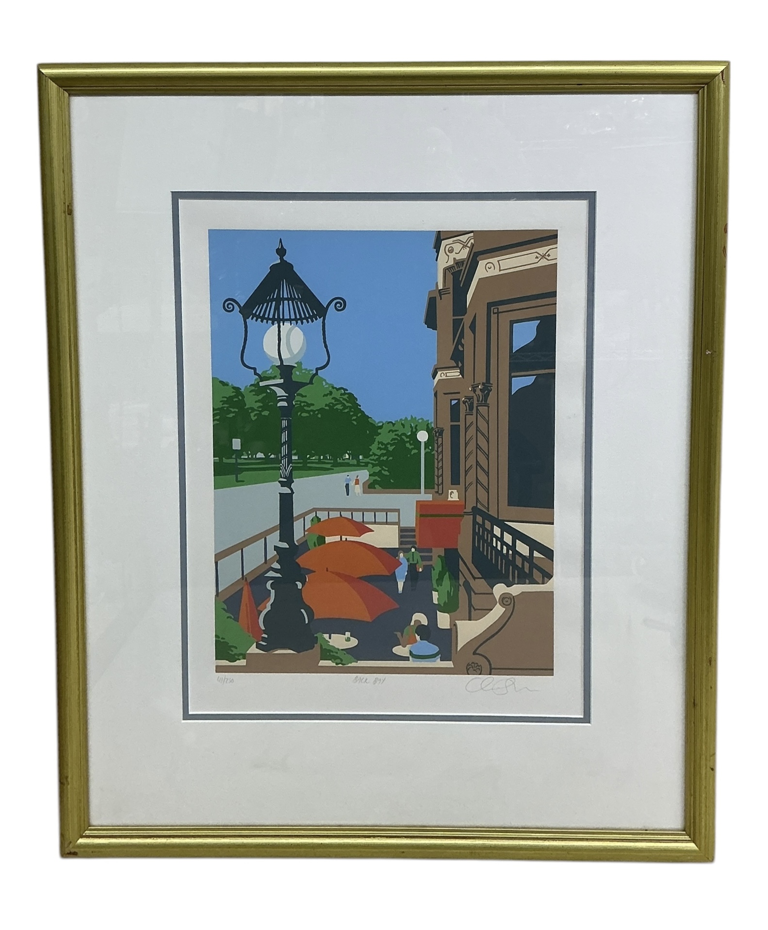 Oren Sherman Pencil Signed Color Lithograph Of Back Bay Boston. In very good condition. Sight size is approx. 18.25” by 14” and frame size is approx. 28” by 23.” Signed lower right.