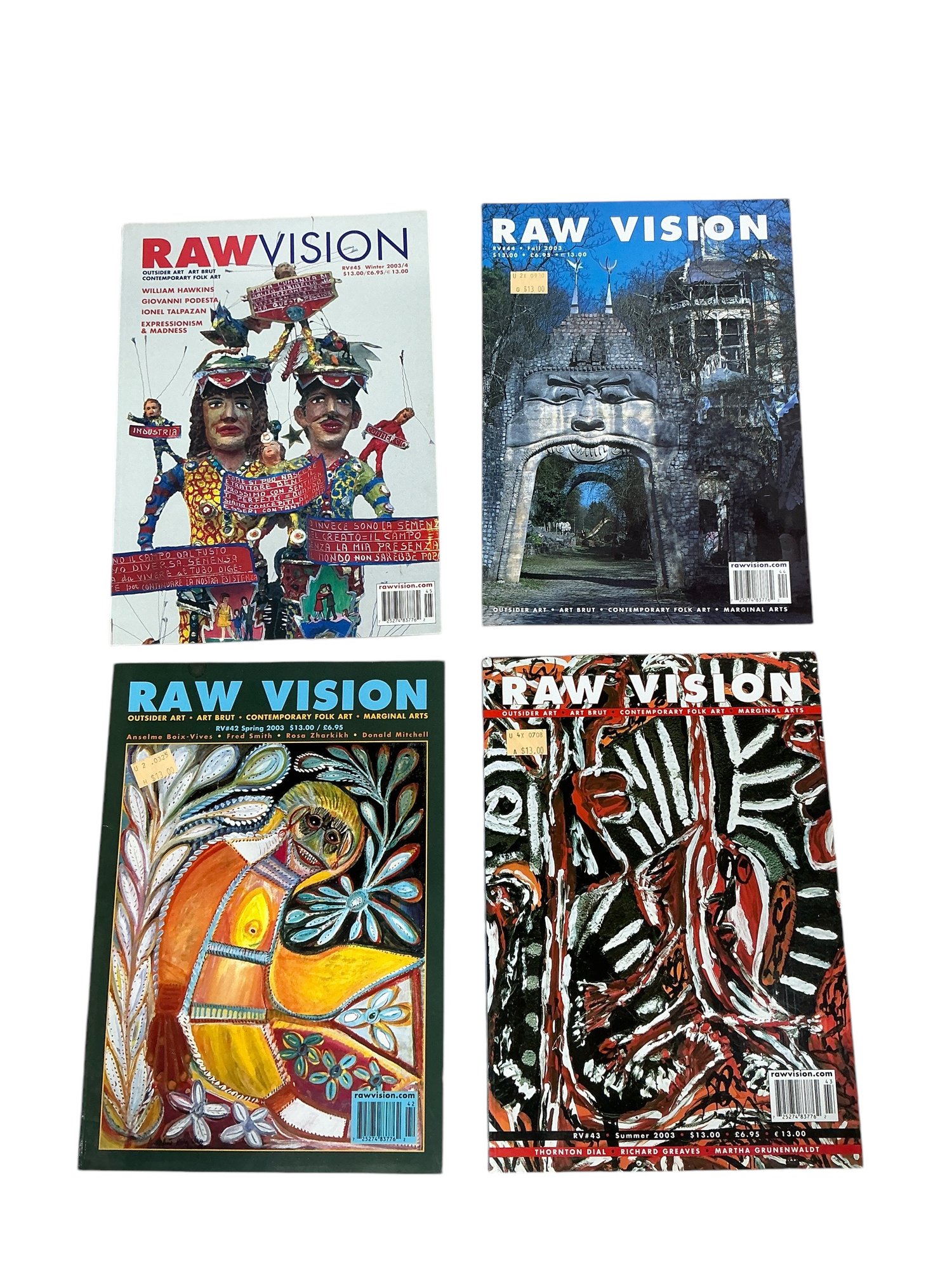 Raw Vision Magazine Full Year 2003 Four Issues Thornton Dial Marginal Arts William Hawkins Art Brut. Each is approx. 11.75” by 8.5."