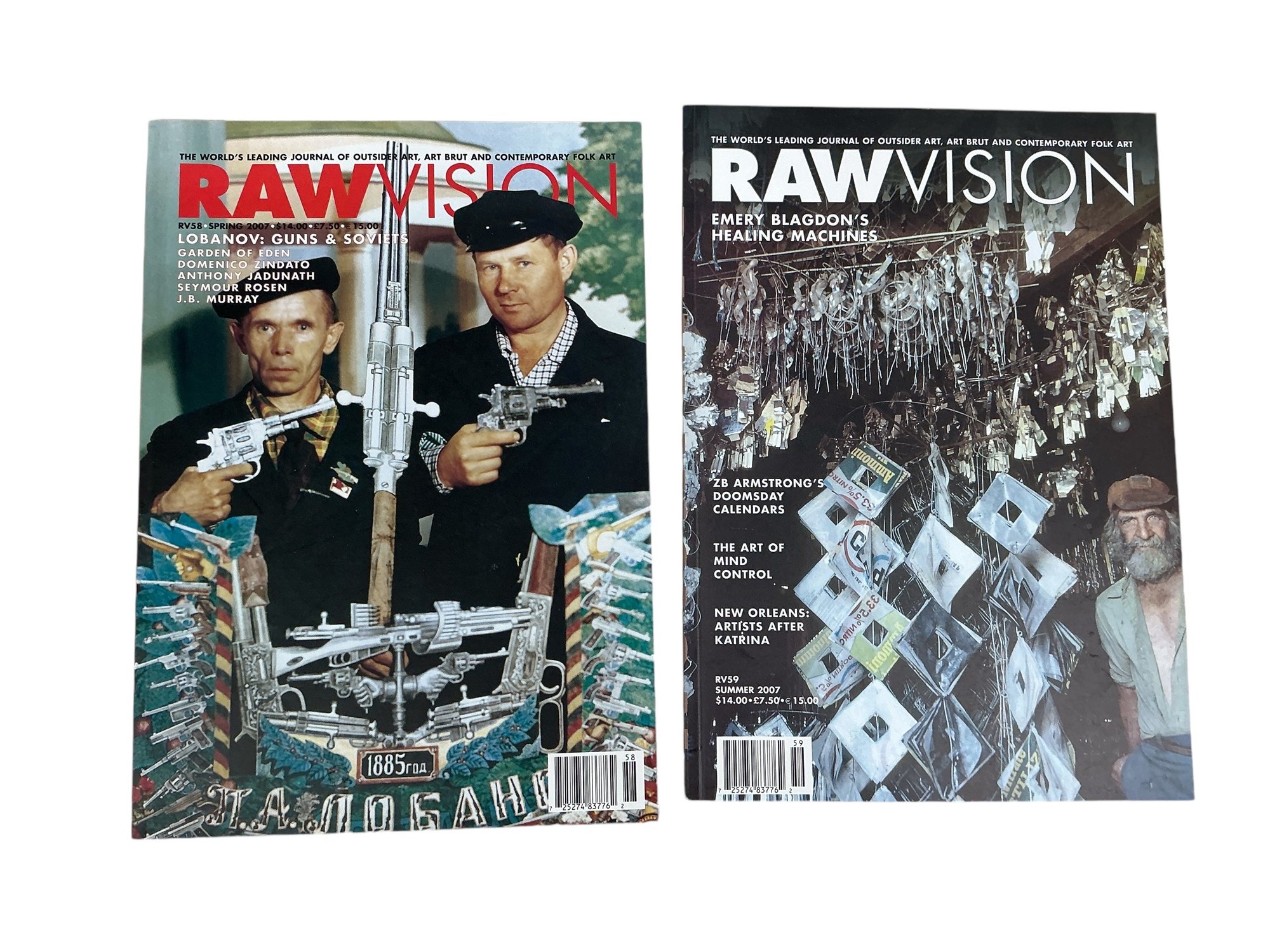 Raw Vision Magazine Outsider Art Spring 2007 And Summer 2007 Issues RV 58 And 59 Lobanov, Emery Blagdon. Each is approx. 11.75” by 8.5."