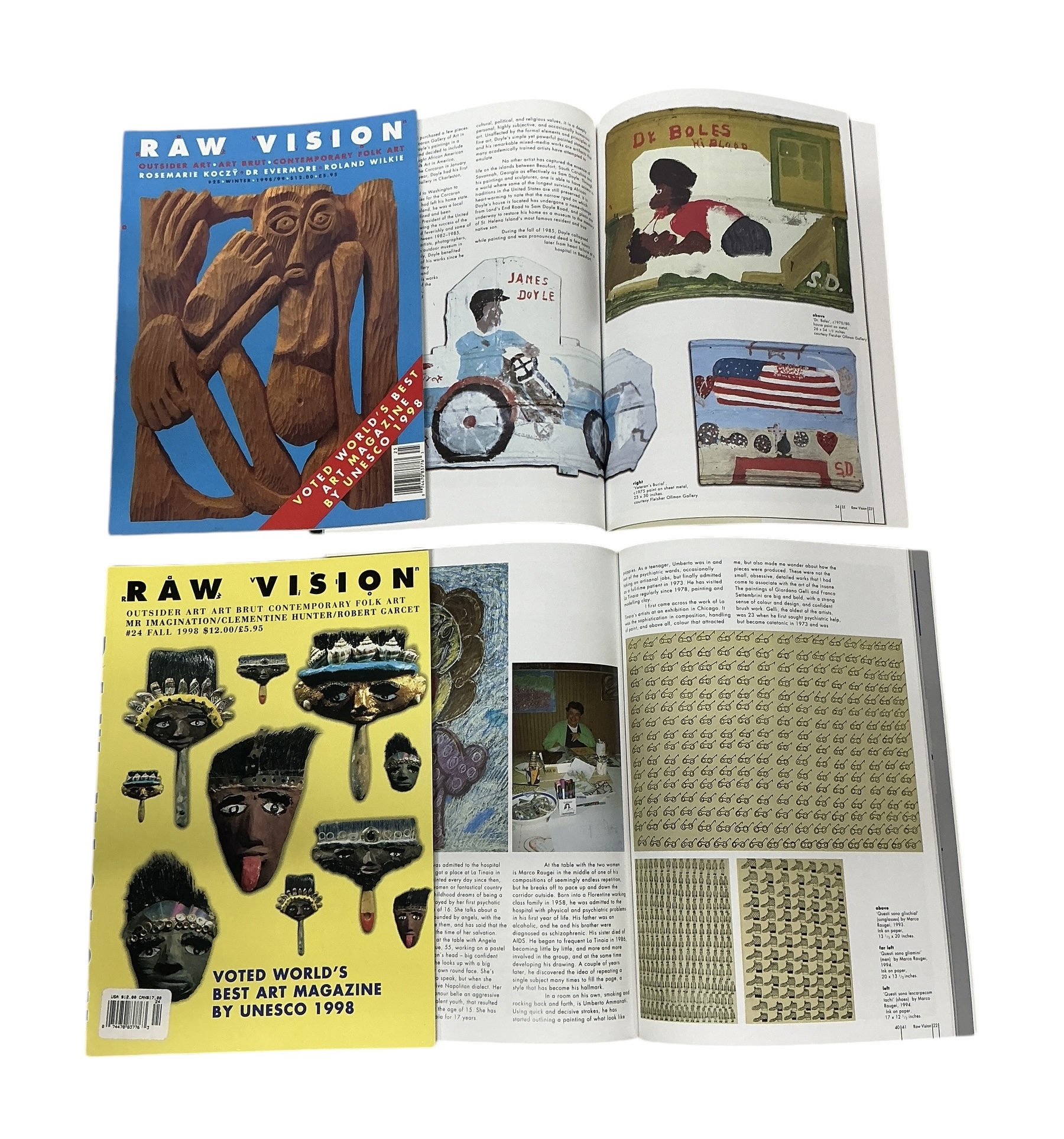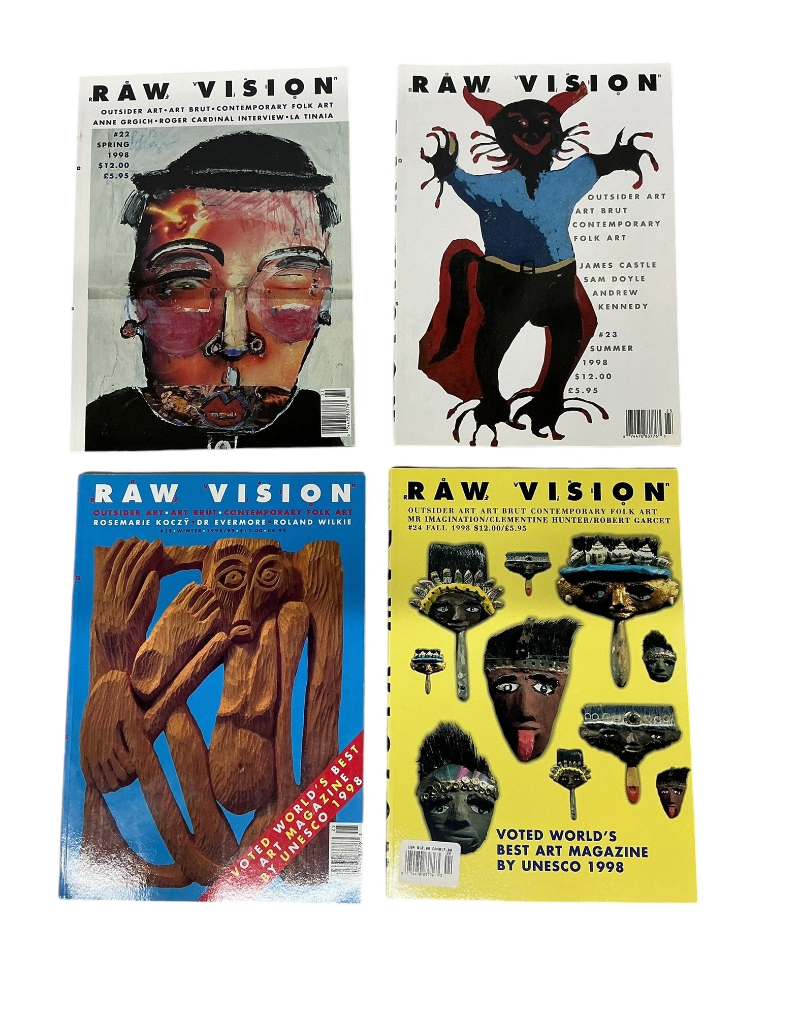 Raw Vision Outsider Art Magazine Full Year For 1998 Issues 22 23 24 And 25 Roger Cardinal James Castle. Each is approx. 11.75” by 8.5."