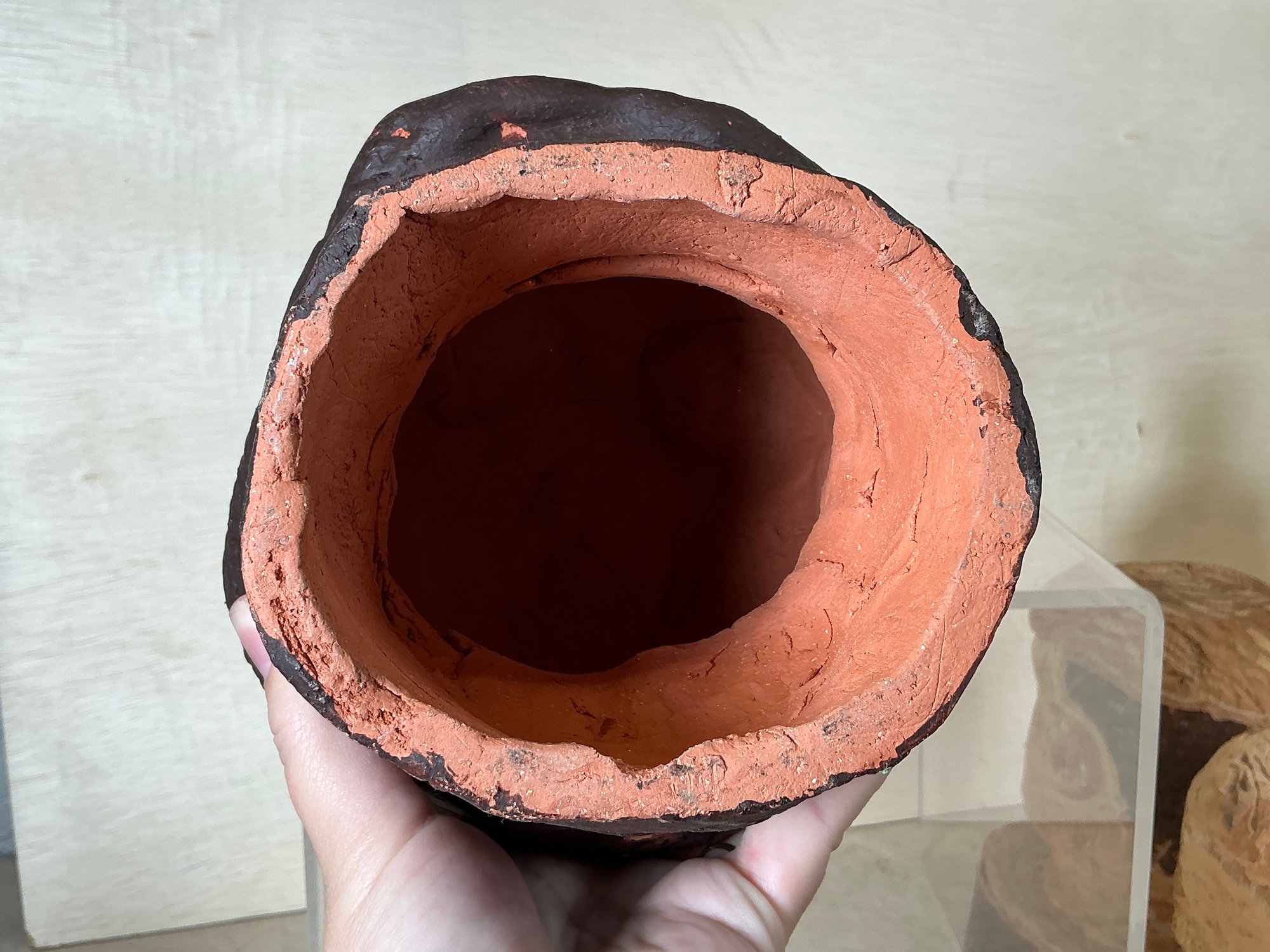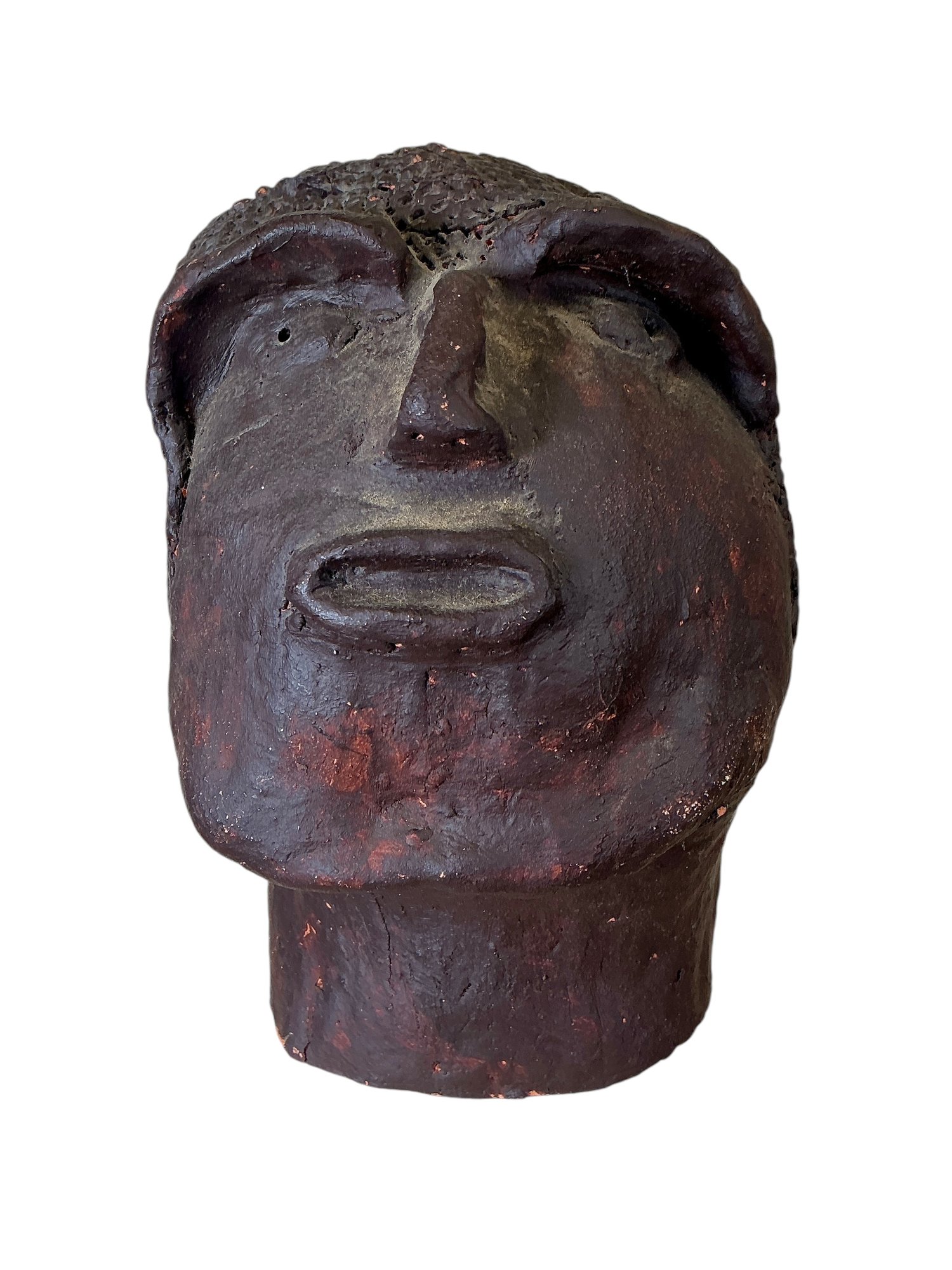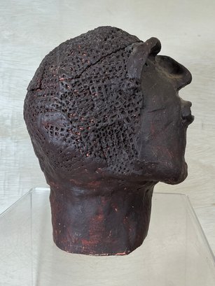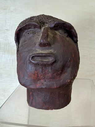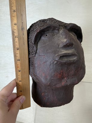 Primitive Style Clay Neanderthal Looking Sculpture Of Head, measures 9” tall. Large, and heavy.