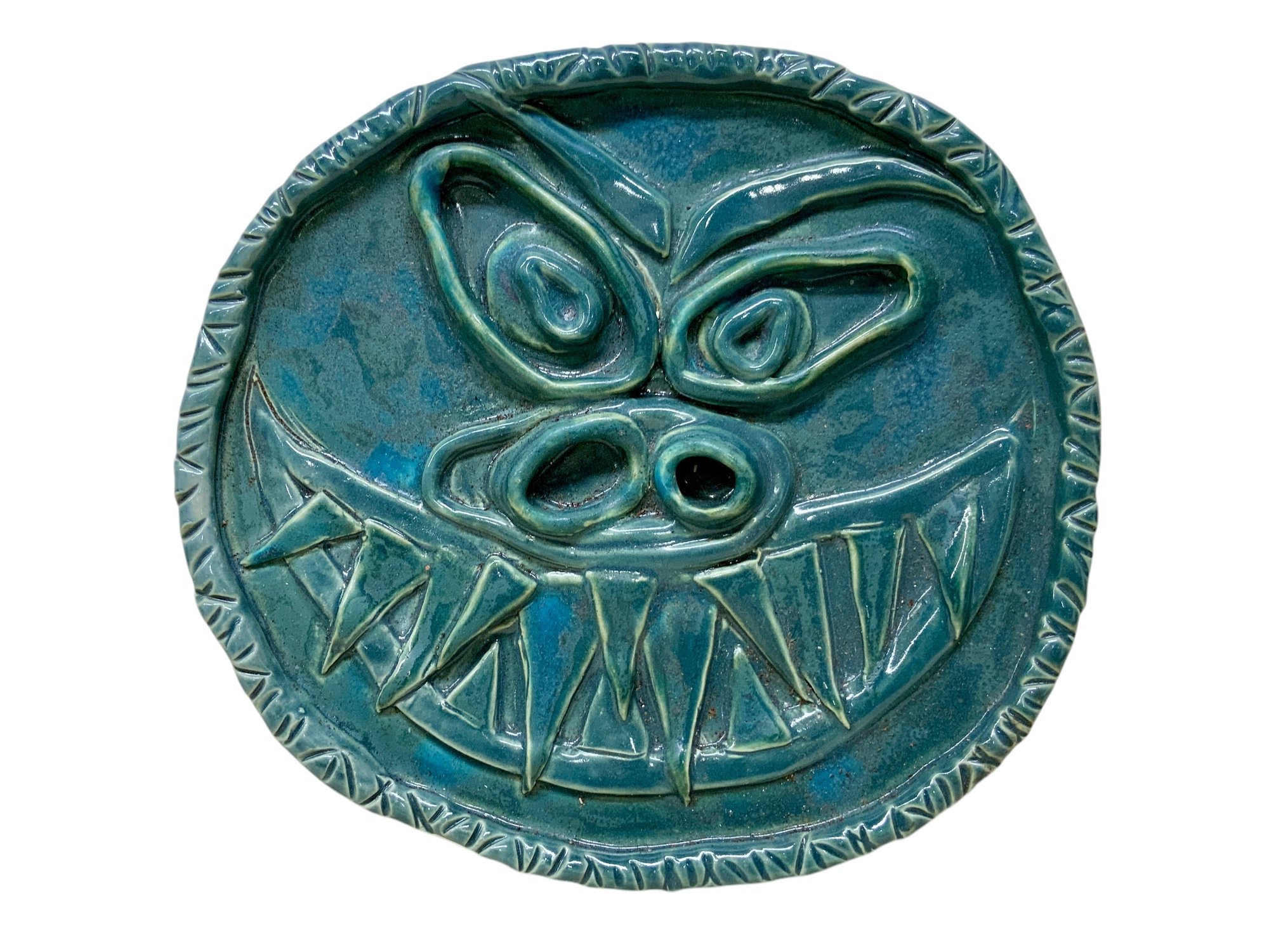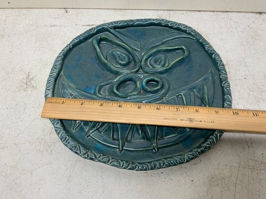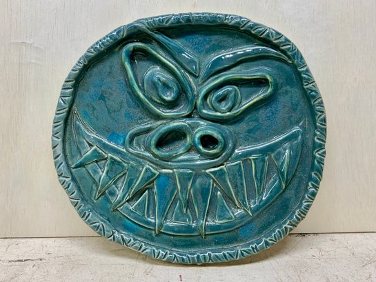 Grotesque Ceramic Face Signed MEW, measures 10” wide.