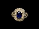 Sapphire And Pave Diamond 18K White Gold Ring, size 6.5, impressive and very sparkly ring, weighs 4.4 dwt. The sapphire has some fleck inclusions that we tried to capture in the photos.