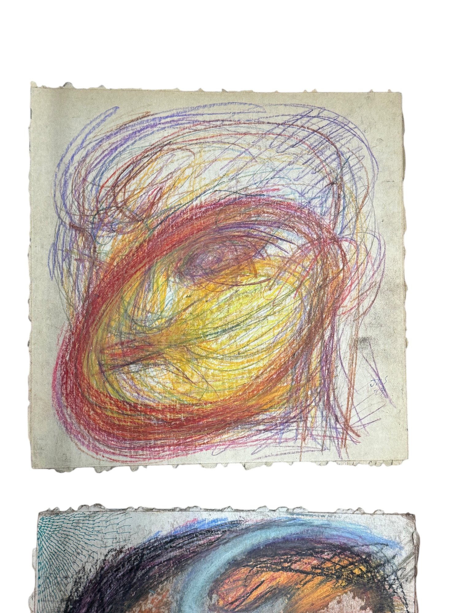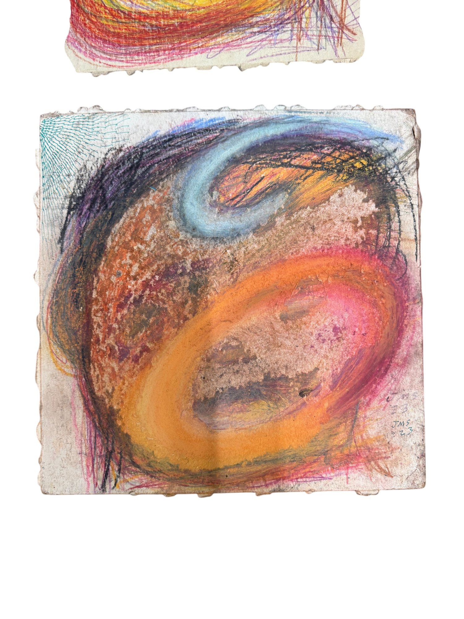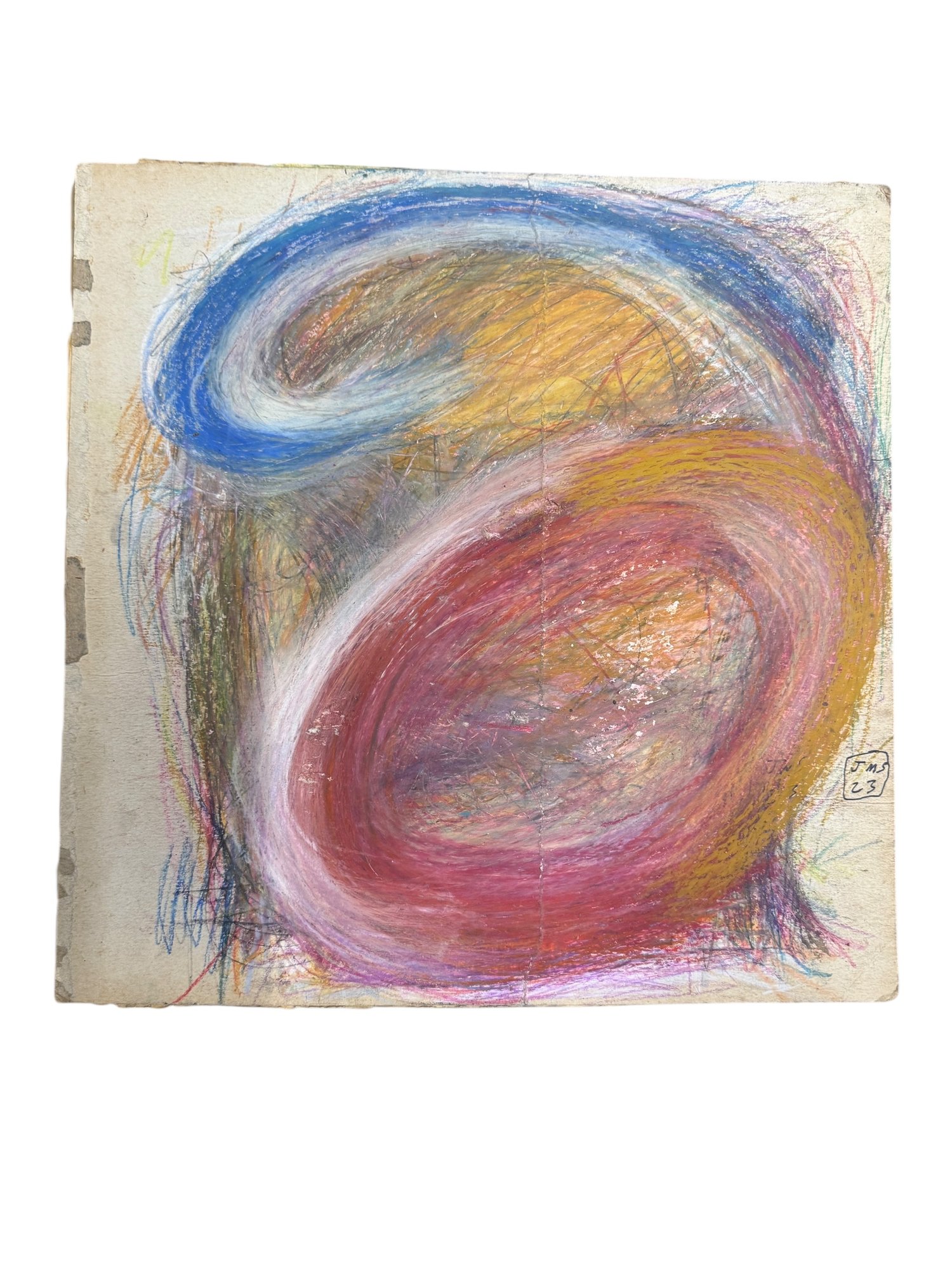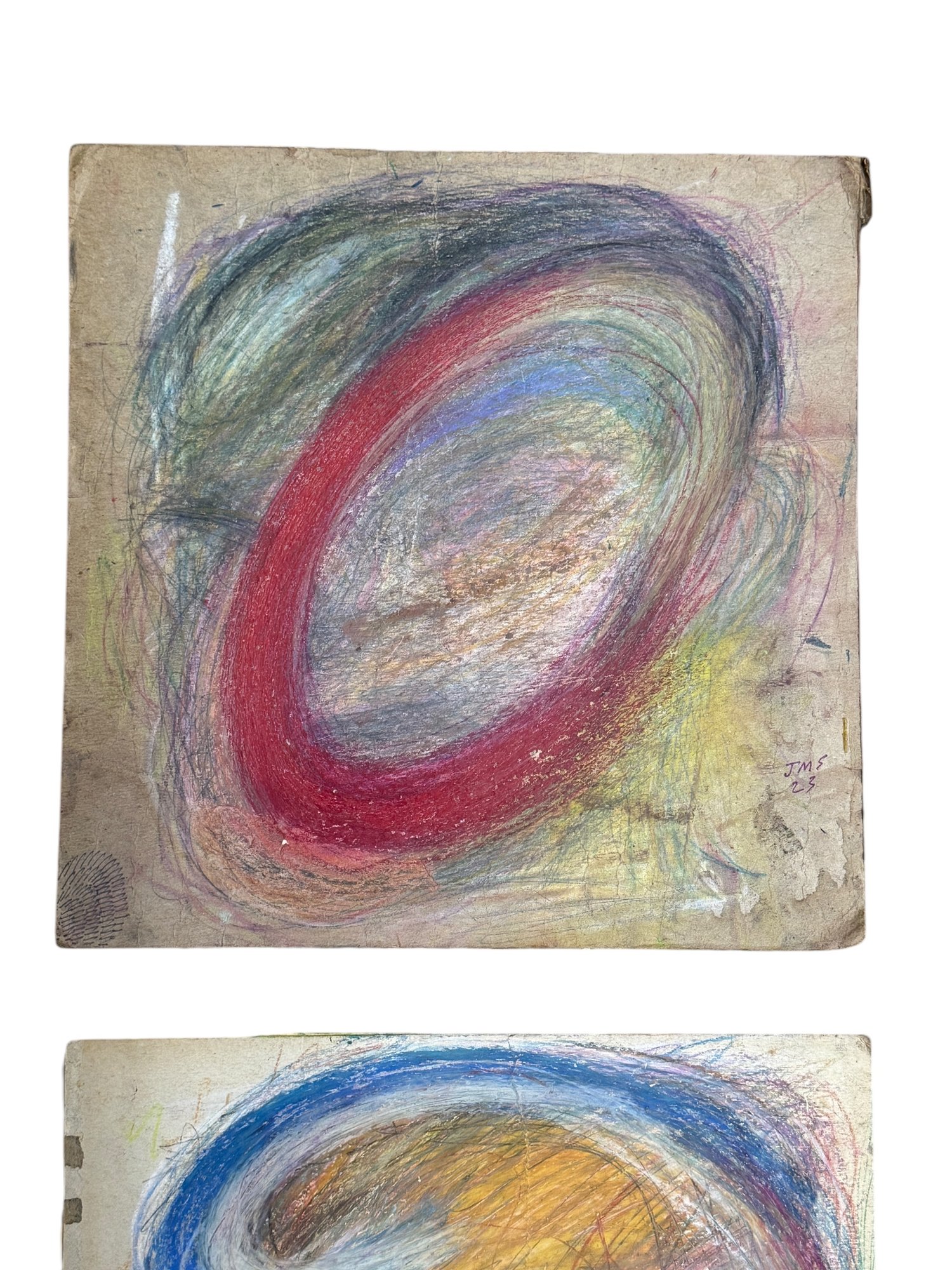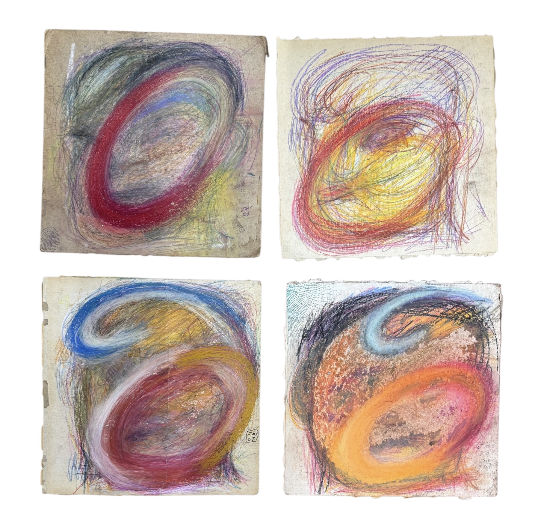 Jon Sarkin (1953 - 2024) Series Of 4 Jon Sarkin 12" X 12" LP Covers Mixed Media Spirals Searching? (Our Title) Jon was known for creating art on the backs of LP covers. We wonder which if not all, he listened to.