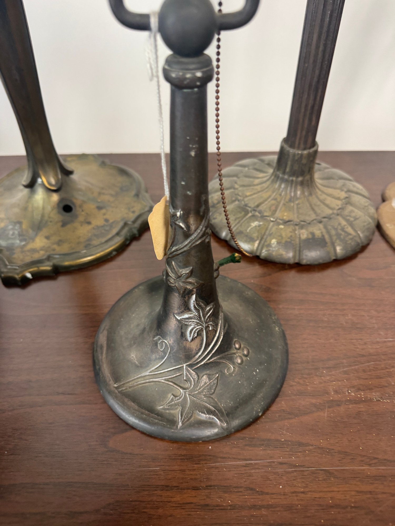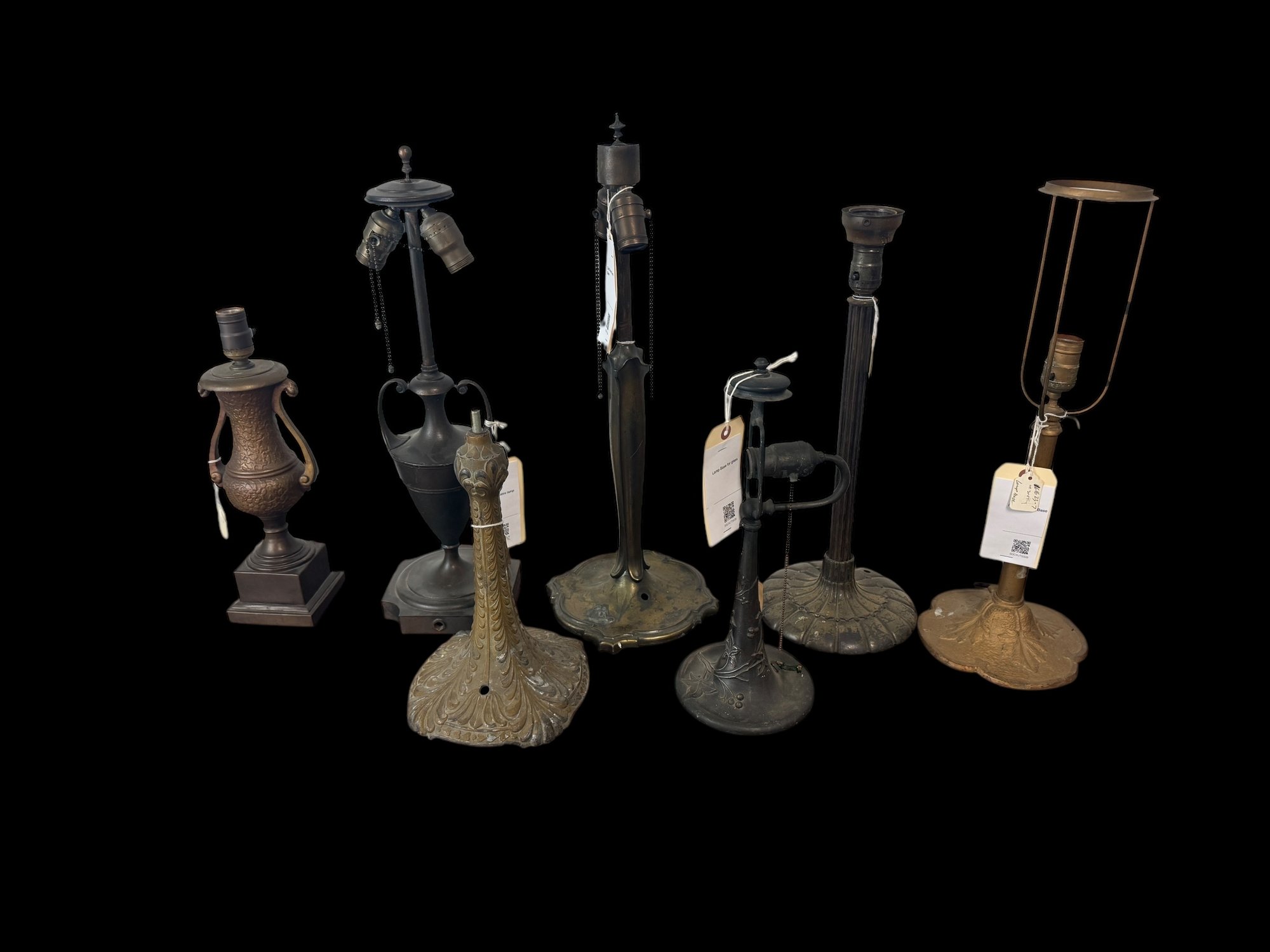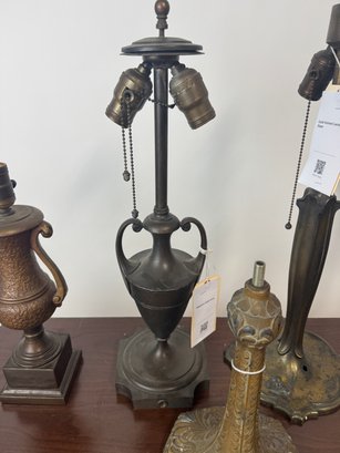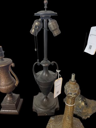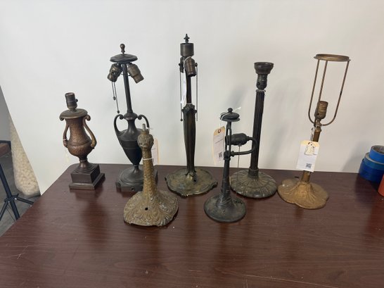 Seven antique lamp, bases, Pairpoint brass metal, etc. Tallest is 22.5 inches see photos for condition, as found.
