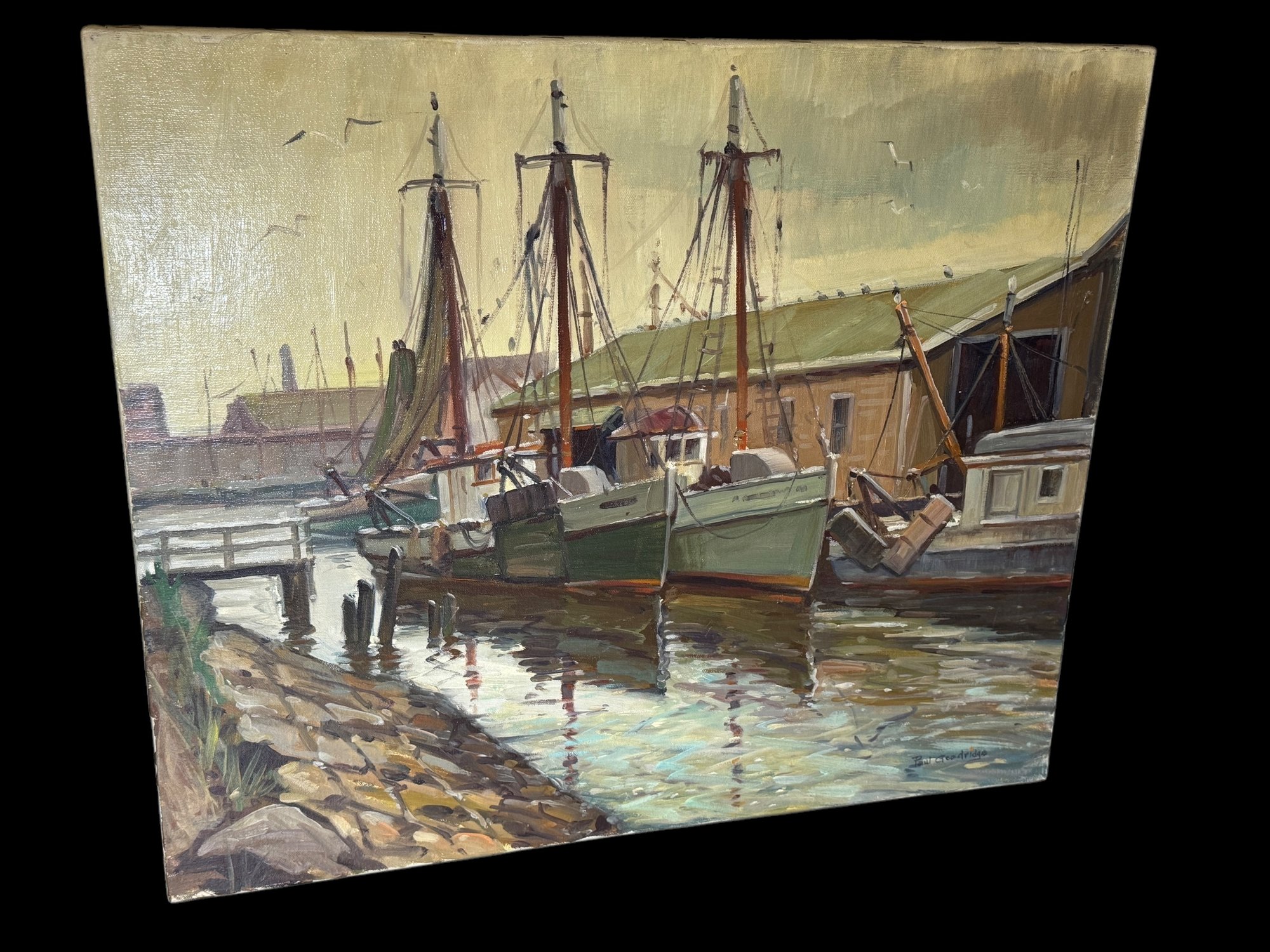 Signed Paul Goodridge Boats in Harbor 20" x 24" o/c painting