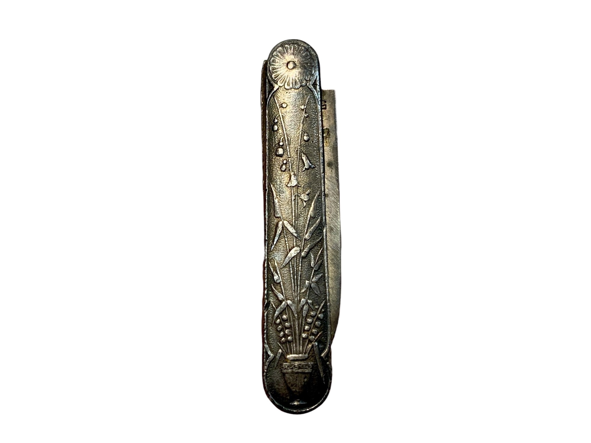 Small Antique Sterling Silver Pocket Knife, marked sterling on blade, measures just shy of 2.5” in length. Weighs 13.2 dwt.