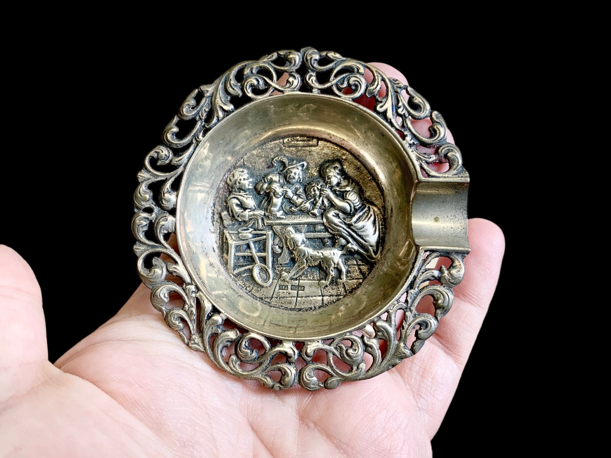 Small Silver Repousse Ashtray Marked 985 Silver, measures 3” in diameter, weighs 17.63 DWT.