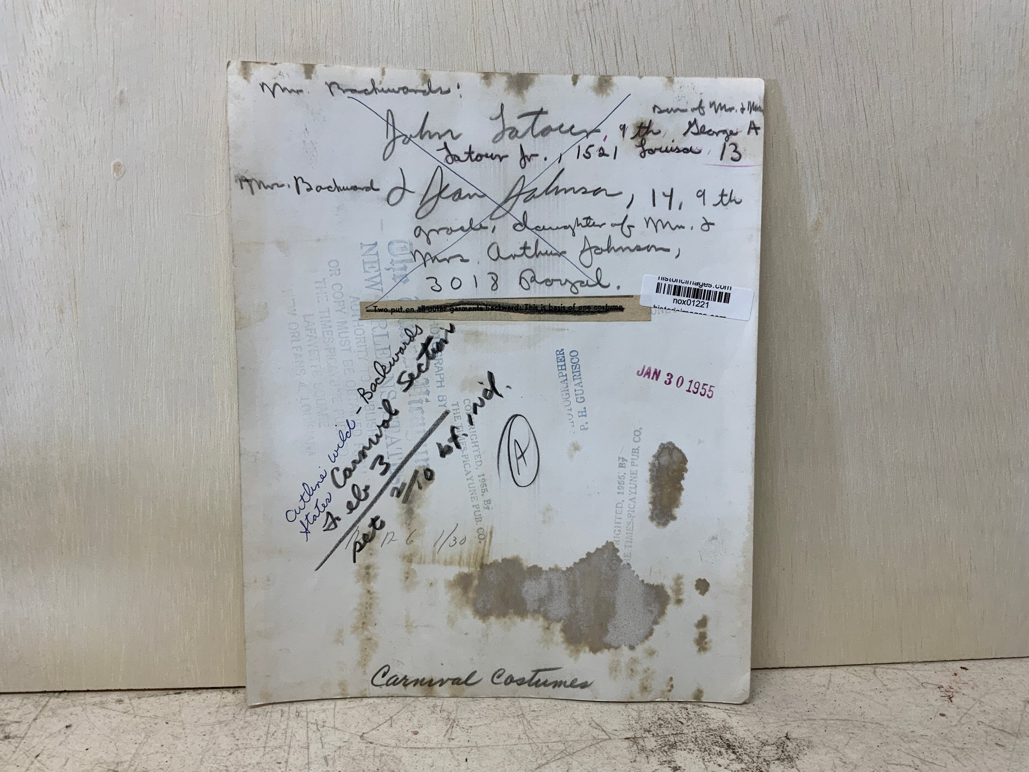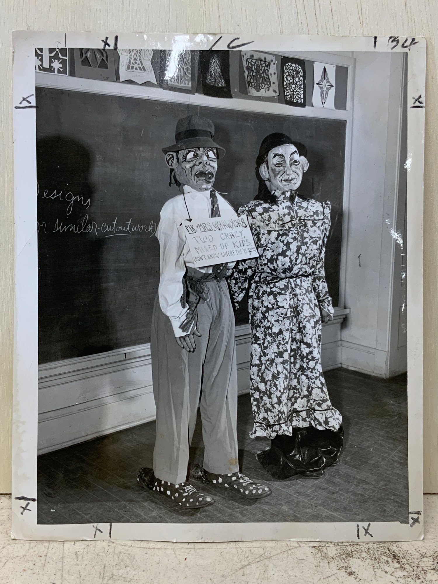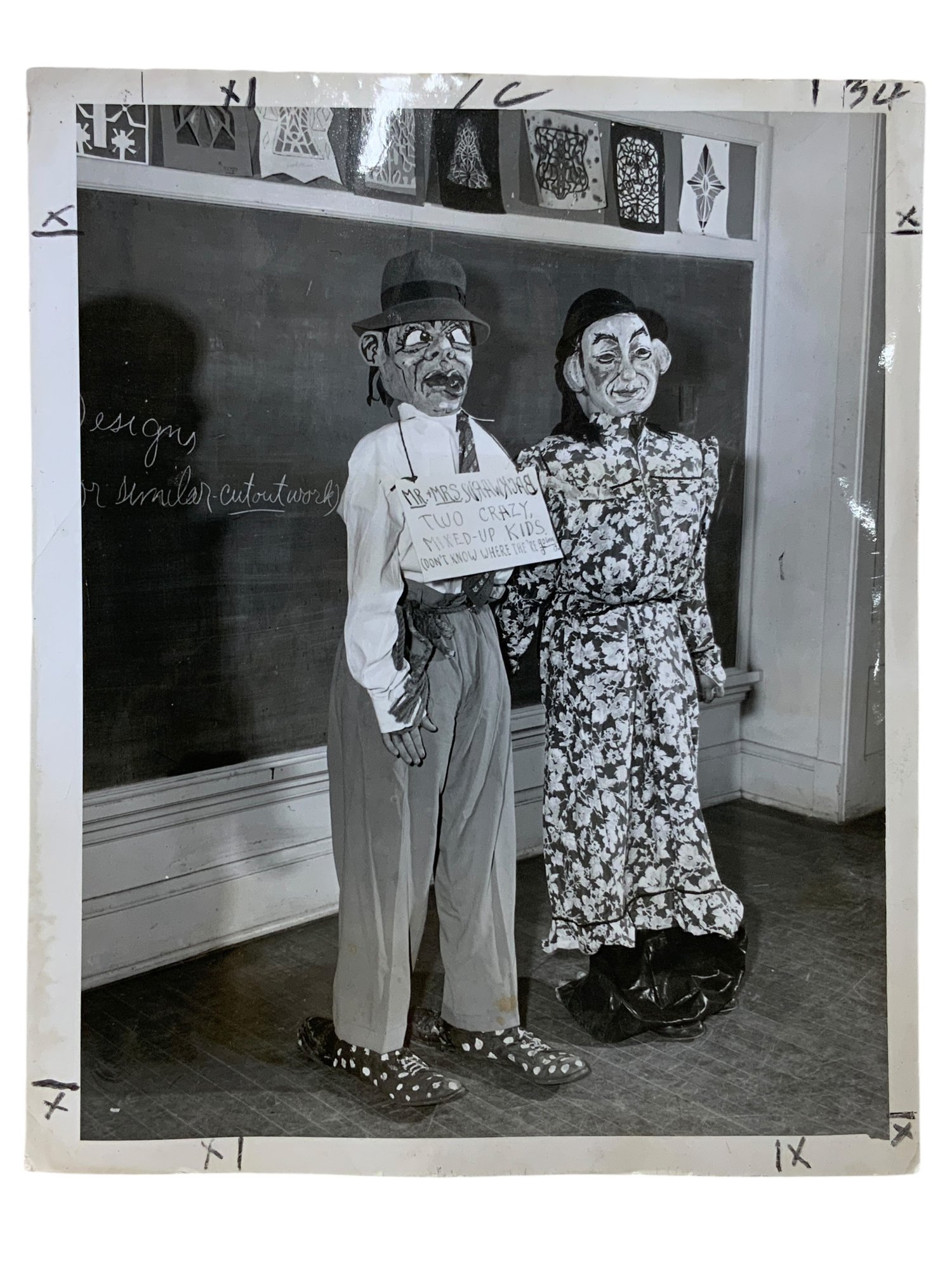 Spooky Vintage Backwards Costume Black And White Photo, measures 10” x 8.”
