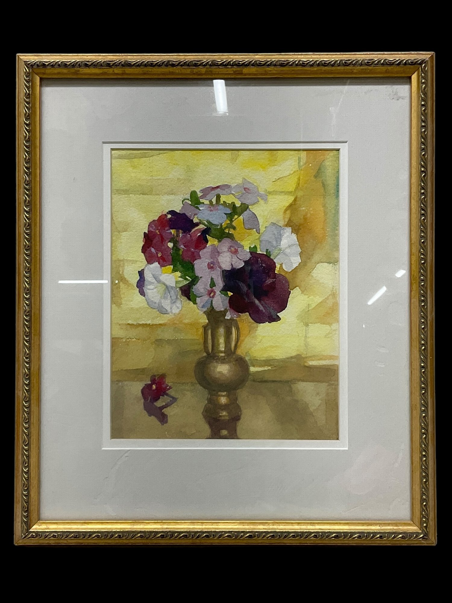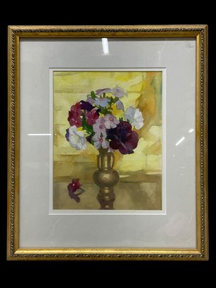 Still Life Watercolor Of Flowers By Marguerite S Pearson, this is an unsigned piece, but is certified on the back by the director of the RAA, as being by Pearson. Measures 16” x 13.5” including the frame.