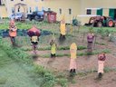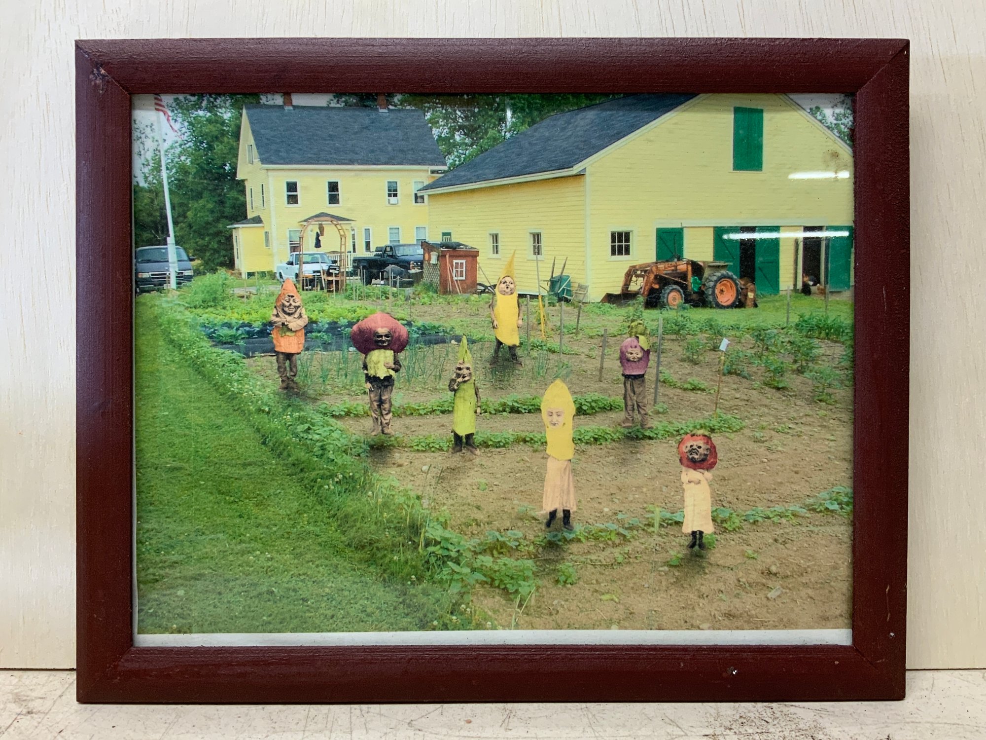 Strange Altered Photo Of Creepy Masked Vegetable Figures, measures 10” x 12.”