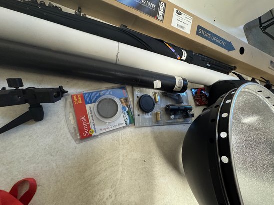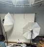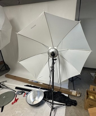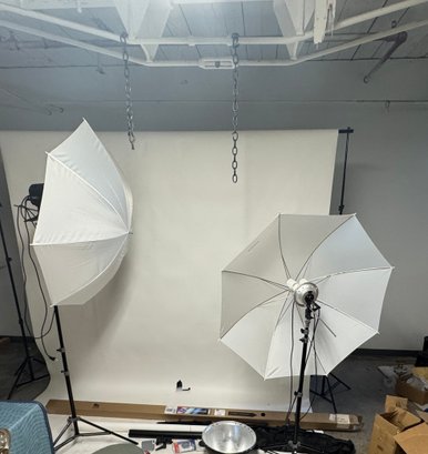 You get everything you see in the pictures. A great setup for professionals! The rack is 94" tall x 110" long, the umbrellas are 44" in diameter. Everything is in good condition.