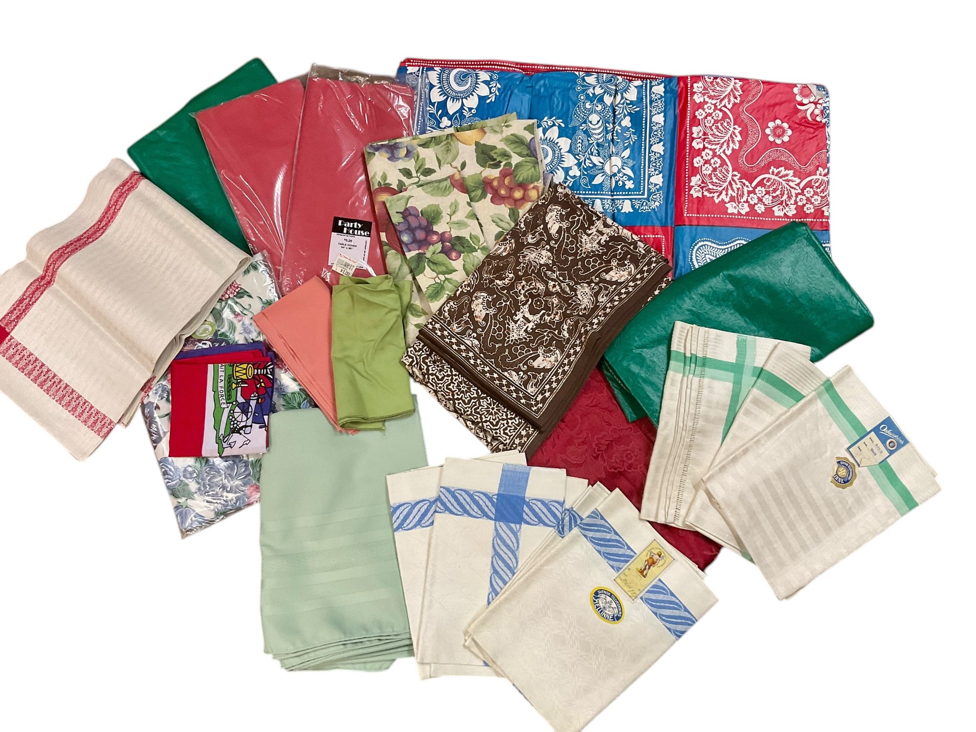 Tablecloths, Placemats, Napkins, Etc., generally in clean and unstained condition, might have a stain or two that we did not spot.