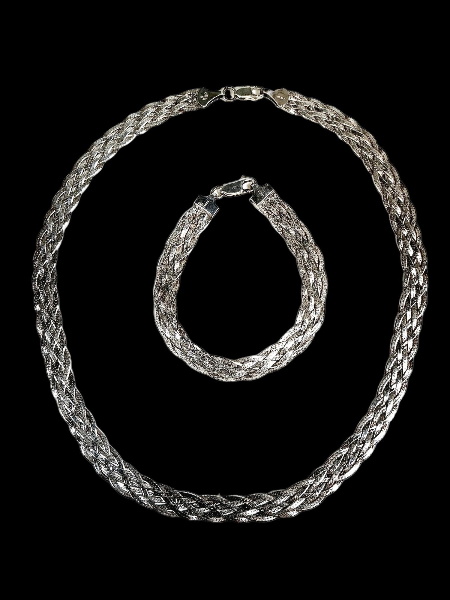 Italian Sterling Chain Bracelet And Necklace, the bracelet is 7.5” in length, the necklace is 17.5” in length. Both marked Italy, 925. Very sparkly and pretty!