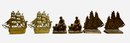 Three Antique Sets Of Metal Bookends Masted Ships And Abraham Lincoln. All in good condition but one bookend has some paper adhered to the base, please see photos. The largest is 5.75” tall.