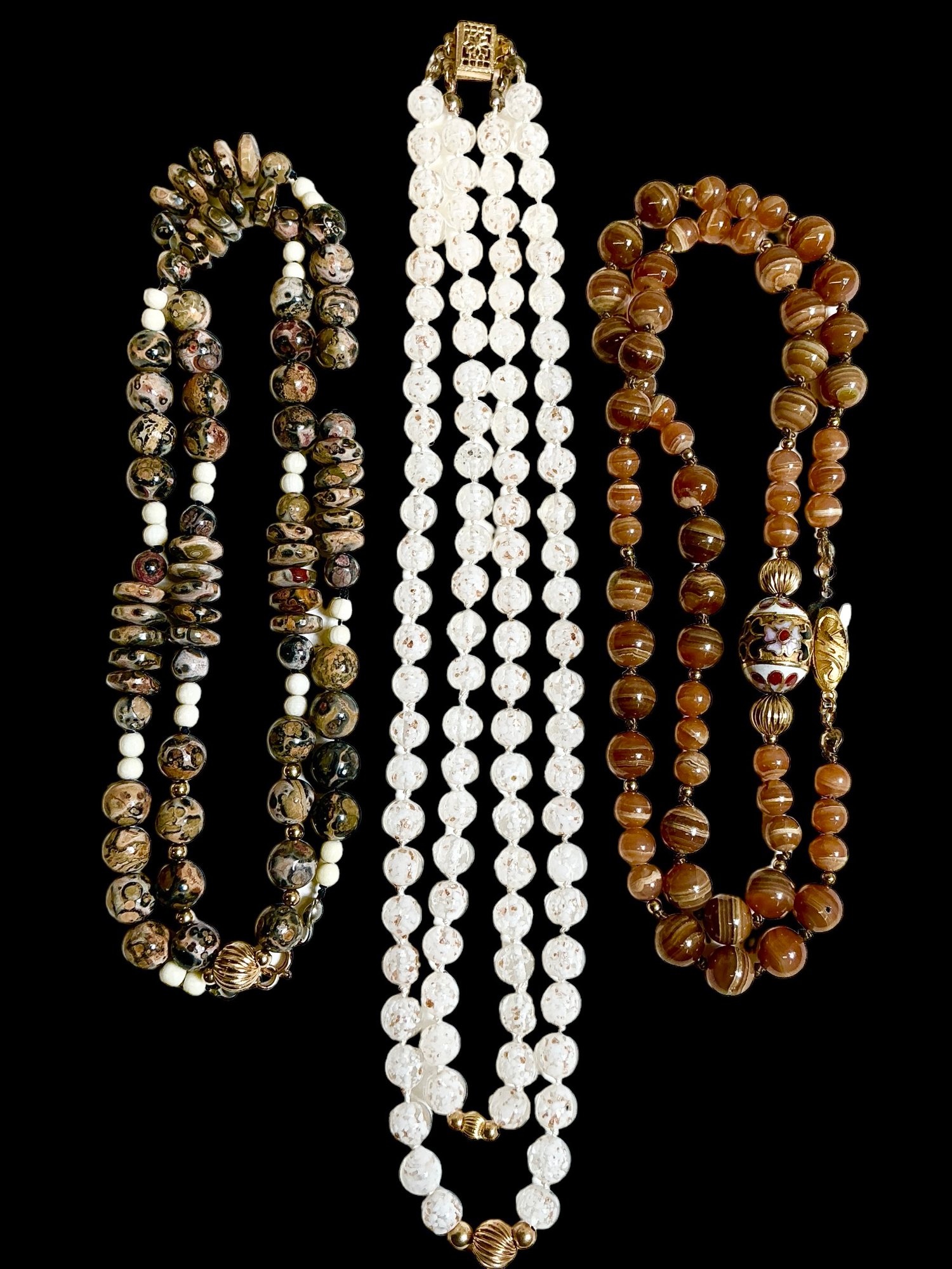 Three Beaded Necklaces Two Natural Stone One Antique Beads, these measure 22,” 24,” and 15” in length.