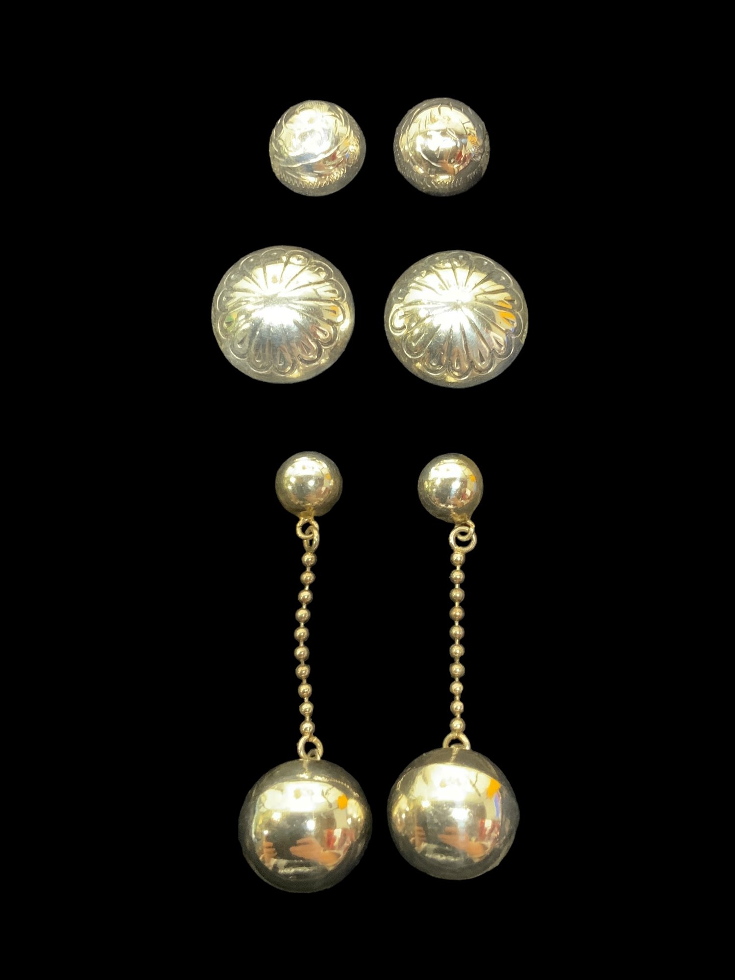 Three Pairs Of Sterling Post Earrings, not all marked, the largest pair measures 2” in total length.