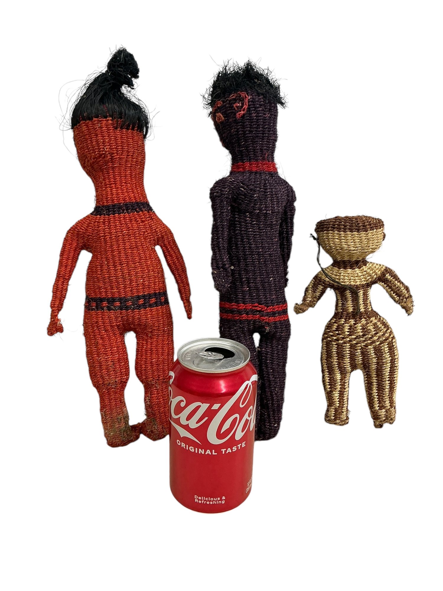 Trio Of Antique Basketry Dolls. The natural fiber seems to have attracted some unwanted guests at some point, but these are largely in tact and in decent condition. Largest is approx. 13” tall.