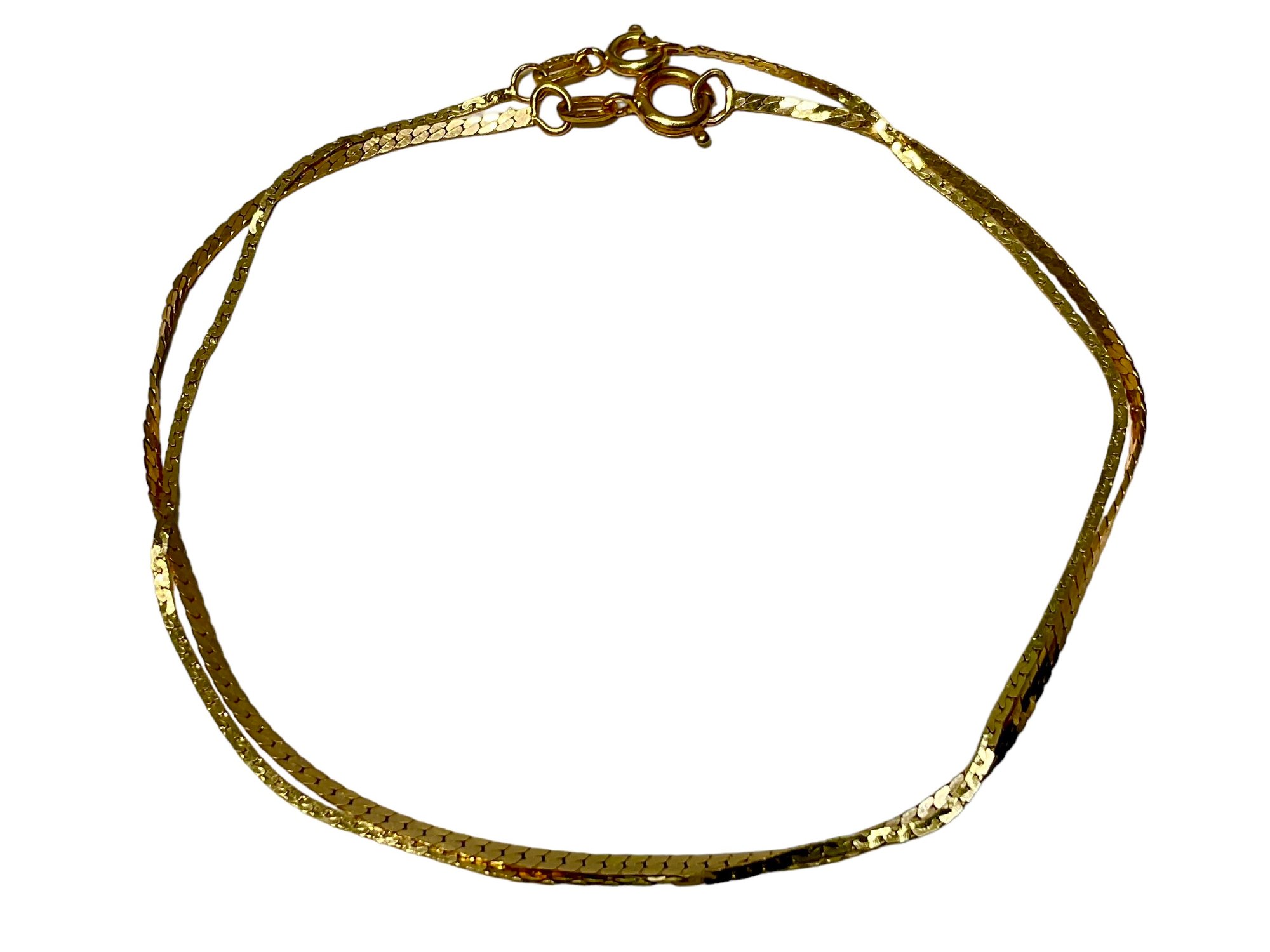 Two 14K Gold Chain Bracelets, both very fine chains, these weigh 1 dwt total. Marked 14K. One is 7” in total length, the other is closer to 6.5” in length.