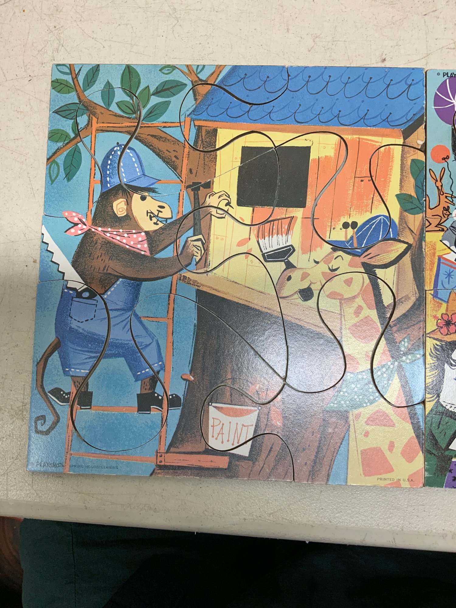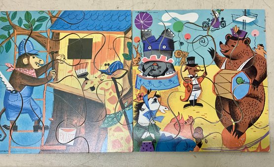 Two 1960s Toy Puzzles Animal Theme, please note, one of the pieces is broken but all parts are present. See photos.