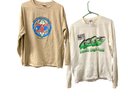 Two Red Auerbach Youth Foundation Long Sleeve Shirts, the white shirt has discoloration, shown. From a smoke free and pet free environment. Both are size large on the tags.