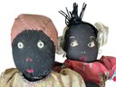 Two Vintage Jamaican Cloth Dolls. Both in fair condition with some wear , fading to the clothes and small holes, please see photos. Each is approx. 15” tall.